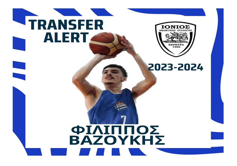 Ειναι στην ευχάριστη θέση να ανακοινώσει την απόκτηση του ΦΙΛΙΠΠΟΥ ΒΑΖΟΥΚΗ (18, 1.96) που αγωνιζόταν την προηγούμενη χρονιά στην ομάδα των ΜΑΧΗΤΩΝ – ΠΕΙΡΑΜΑΤΙΚΟΥ ΠΕΥΚΩΝ.