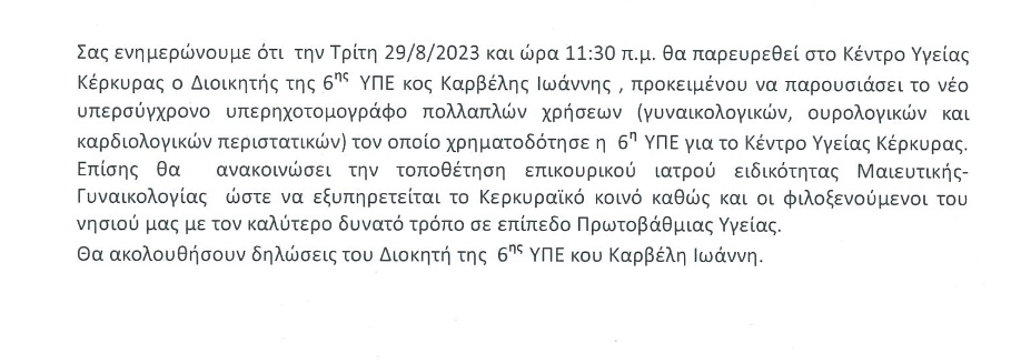 Η ανακοίνωση-ενημέρωση του ΚΥ Κέρκυρας