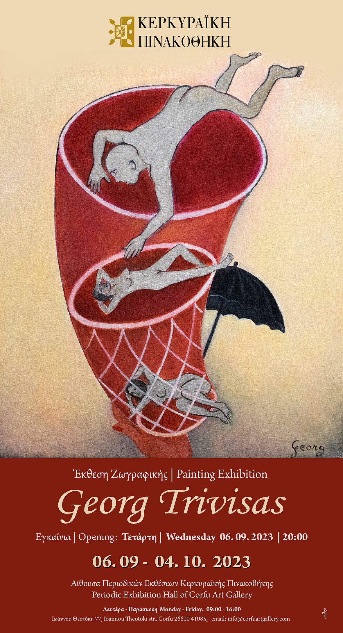 Η Κερκυραϊκή Πινακοθήκη θα παρουσιάσει, στην Αίθουσα Περιοδικών Εκθέσεων, έργα του ζωγράφου Georg Trivisas (Γιώργος Τριβυζάς).