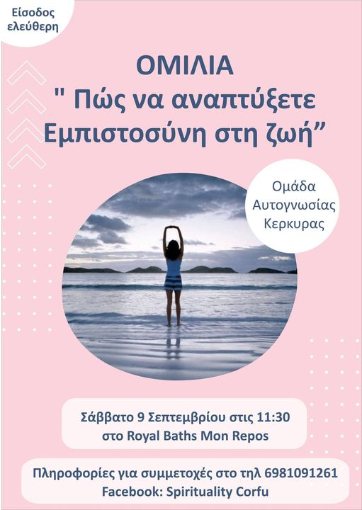 Η ομάδα Αυτογνωσίας Κέρκυρας, οργανώνει ομιλία με θέμα: ” Πώς να αναπτύξετε Εμπιστοσύνη στη ζωή”