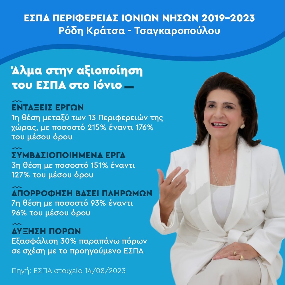 Όσον αφορά στο ΕΣΠΑ και την απορρόφηση των ευρωπαϊκών χρηματοδοτήσεων από την Περιφέρεια Ιονίων Νήσων, όπως αποτυπώνεται στο σχετικό infographic, έχει γίνει άλμα στην αξιοποίηση του ΕΣΠΑ στο Ιόνιο κατά την τετραετία 2019-2023.