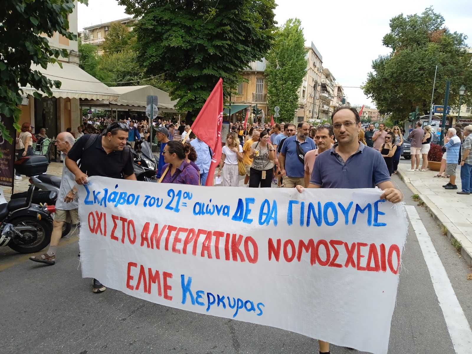 Έτσι και στην Κέρκυρα, μεγάλος αριθμός εργαζομένων ανταποκρίθηκε στο απεργιακό κάλεσμα του Εργατικού Κέντρου Κέρκυρας και συμμετείχε στην απεργιακή συγκέντρωση στις 11:00 το πρωί της Πέμπτης. Από τα ξημερώματα δόθηκε η μάχη της περιφρούρησης της απεργίας με απεργιακές φρουρές στις πύλες ξενοδοχείων. Προσυγκέντρωση στις 10:30 πραγματοποίησαν εκπαιδευτικoί έξω από τα λύκεια της πόλης και στη συνέχεια με πορεία έφτασαν στο χώρο της απεργιακής συγκέντρωσης του Εργατικού Κέντρου, όπου ενώθηκαν με τους υπόλοιπους εργαζόμενους. Ιδιωτικοί υπάλληλοι, δημόσιοι υπάλληλοι, συνταξιούχοι, φοιτητές, μαθητές βρέθηκαν μαζί στη μεγάλη συγκέντρωση για να βροντοφωνάξουν ότι αυτό