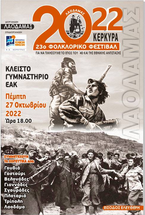 Στο Φεστιβάλ συμμετέχουν 47 χορευτικά τμήματα και σύμφωνα με τους διοργανωτές η εκδήλωση είναι η μαζικότερη πολιτιστική εκδήλωση στο νησί. Μια εκδήλωση θεσμός πια μετά από 24 χρόνια, στην επέτειο ενός μεγάλου εθνικοαπελευθερωτικού αγώνα με πολλαπλά μηνύματα. «Το πραγματικό νόημα της επετείου της Επανάστασης σήμερα είναι αναμφίβολα ότι χωρίς τον επαναστατικό ξεσηκωμό στα 1821 όλων των τότε καταπιεσμένων, δε θα υπήρχε αυτό το ιστορικό γεγονός και το αποτέλεσμά του, η ανατροπή της οθωμανικής, της παλιάς εξουσίας και η εγκαθίδρυση της νέας και σαν αποτέλεσμα είχε την δημιουργία του πρώτου ανεξάρτητου Ελληνικού κράτους. Επίκαιρα μηνύματα με το βασικότερο ότι ο λαός πρέπει να πιστεύει πάντα στο δίκιο και τη δύναμη του αγώνα του. Ότι η ιστορία γράφεται με ανυπακοή και απειθαρχία προς αυτούς που επιβουλεύονται την ελευθερία του, την ίδια του την ζωή» τονίζει ο γραμματέας και από τους ιδρυτές του Λαοδάμαντα κος Πέρρος Νίκος και συνεχίζει: « Ο Ελληνικός λαός δεν έχει να κερδίσει τίποτε από αυτούς που καλλιεργούν την μοιρολατρία, που τρομοκρατούν με εκβιασμούς ότι δεν γίνεται τίποτε. Και τότε υπήρχαν αυτοί που εχθρεύονταν την επανάσταση και υπερασπίζονταν το παλιό κοινωνικό καθεστώς, το Οθωμανικό σύστημα και την εξουσία του Σουλτάνου γιατί αντλούσαν προνόμια από αυτό. Απαιτούσαν πίστη και υποταγή στην “Ιερή Συμμαχία” των δυναστών τότε. Και σήμερα πρέπει να βγάλει συμπεράσματα από τα μηνύματα του ’21, από τα λόγια και τις πράξεις των Λαϊκών Ηρώων, του Κολοκοτρώνη, του Καραϊσκάκη, του Μακρυγιάννη, του Ρήγα. Η Κέρκυρα τιμά αυτόν τον αγώνα με τον καλύτερο τρόπο, με χορούς και τραγούδια δημιούργημα του ίδιου του λαού, μέσα από τον αγώνα του για επιβίωση, μέσα από τις κοινωνικές του στιγμές, της χαράς ή της λύπης. Χίλιοι και πλέον χορευτές και χορεύτριες όλων των ηλικιών από κάθε γωνιά του νησιού συνοδευόμενοι από ζωντανή μουσική θα παρουσιάσουν ένα καταπληκτικό τριήμερο υπερθέαμα, όπου και η Ελληνική παραδοσιακή φορεσιά θα έχει την τιμητική της. Η Είσοδος είναι ελεύθερη Παρασκευή 22, Σάββατο 23 και Κυριακή 24 Μάρτη από τις 18:00 στο δημοτικό θέατρο.».