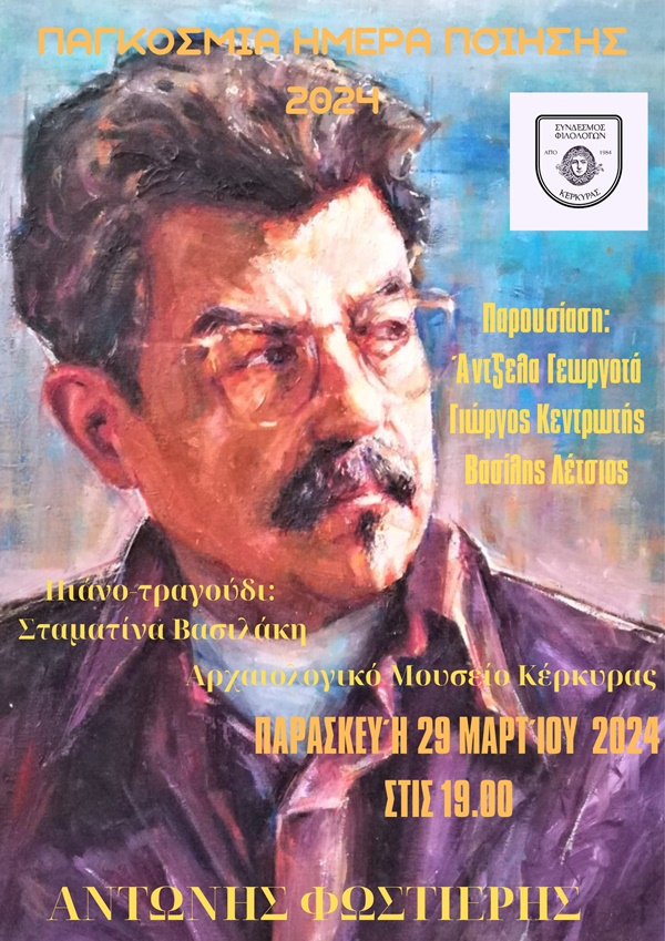 Ο Σύνδεσμος Φιλολόγων Κέρκυρας γιορτάζει την Παγκόσμια Ημέρα Ποίησης τιμώντας τον ποιητή Αντώνη Φωστιέρη.