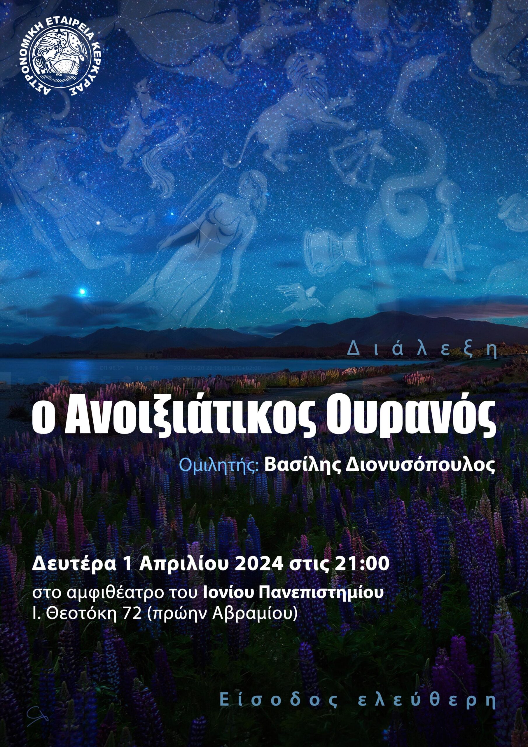 Η Αστρονομική Εταιρεία Κέρκυρας διοργανώνει διάλεξη με θέμα: Ο Ανοιξιάτικος Ουρανός