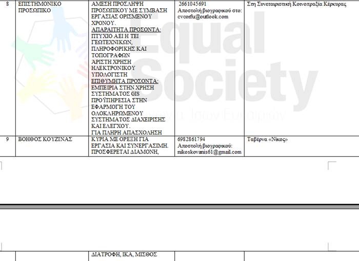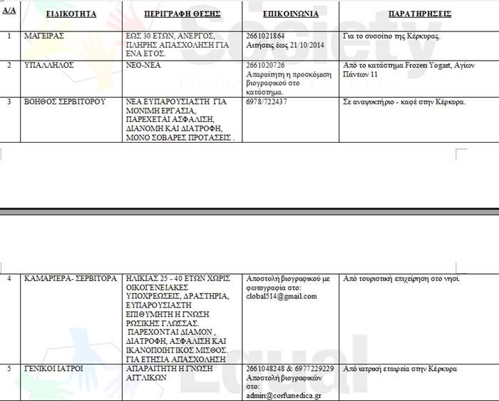Είναι ιδιαίτερα σημαντικό ότι ο Οργανισμός Equal Society λειτουργεί από το 2013 τη μοναδική δομή ενημέρωσης ανέργων και επιχειρήσεων στην Κέρκυρα και συγκεντρώνει όλες τις κενές θέσεις εργασίας στο νησί τις οποίες δημοσιοποιεί μέσω της πλατφόρμας www.zhteitai.gr Οι ωφελούμενοι των δομών αλλά και η ευρύτερη κοινωνία, έχουν τη δυνατότητα να αναζητήσουν θέσεις εργασίας, οι οποίες ανανεώνονται σε καθημερινή βάση μέσα από τη συνεργασία με τοπικές επιχειρήσεις και επαγγελματίες.