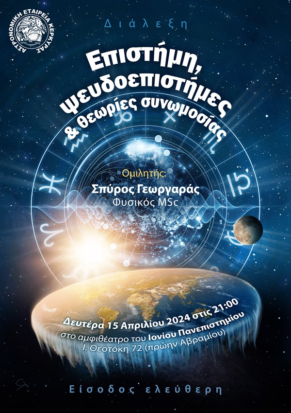 Η Αστρονομική Εταιρεία Κέρκυρας διοργανώνει διάλεξη με θέμα: Επιστήμη, ψευδοεπιστήμες & θεωρίες συνωμοσίας