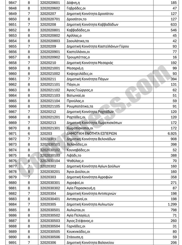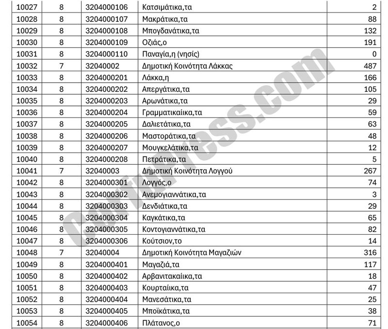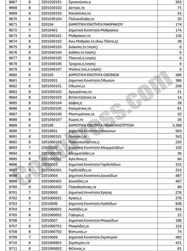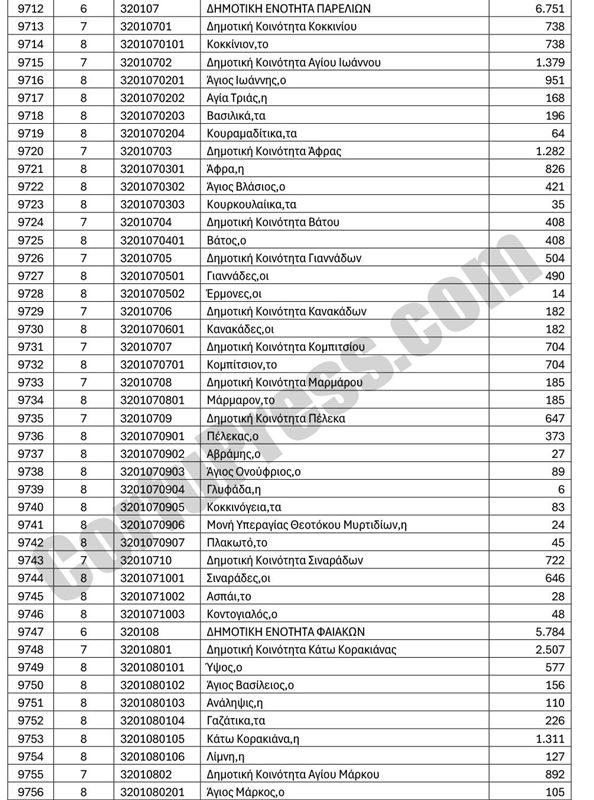 Διαβάστε αναλυτικά τον πληθυσμό που έχει κάθε κοινότητα και συνοικισμός στο Νομό Κέρκυρας.