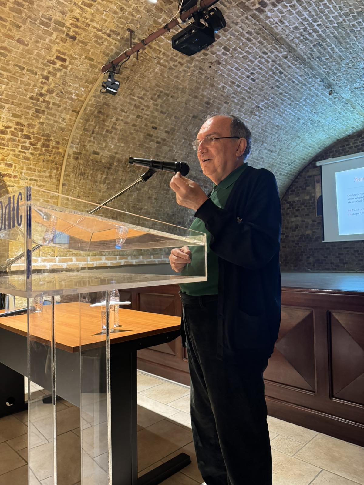 Πριν την ομιλία ο Γενικός Αρχιερατικός Επίτροπος της Ιεράς Μητροπόλεως Κερκύρας, Πρωτοπρ. Θεμιστοκλής Μουρτζανός έκανε μια σύντομη παρουσίαση του ανωτέρω βιβλίου του ομιλητή καθώς και του παιδικού βιβλίου του ιδίου συγγραφέα που τίτλο έχει: «Δίχως φάλτσα η μουσική είναι καλύτερη».