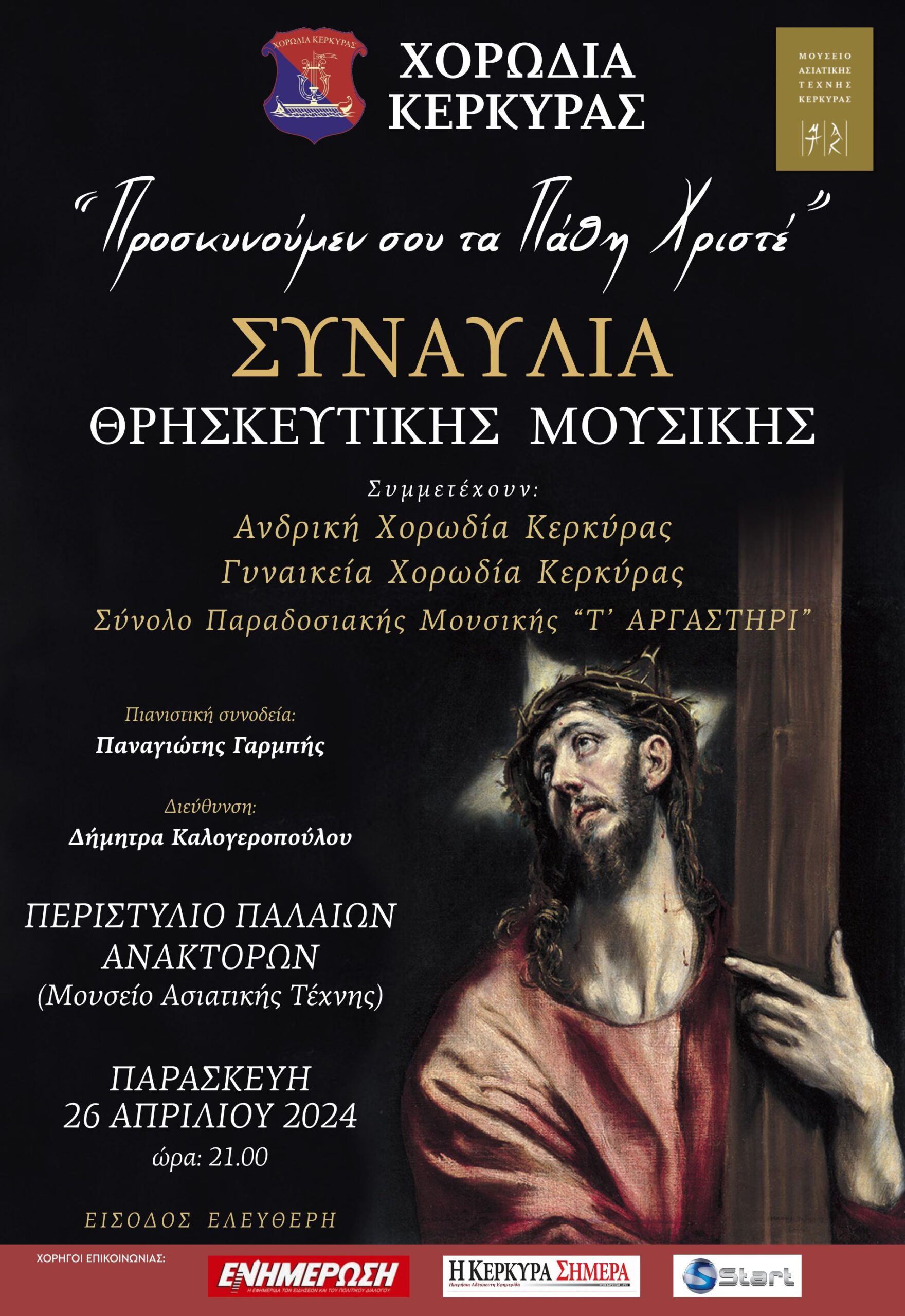 Συναυλία Θρησκευτικής Μουσικής από τη Χορωδία Κέρκυρας την Παρασκευή 26 Απριλίου στις 9μ.μ. στο Περιστύλιο των Παλαιών Ανακτόρων (Μουσείο Ασιατικής Τέχνης).