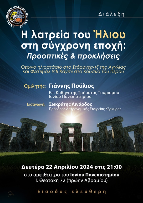 Η Αστρονομική Εταιρεία Κέρκυρας διοργανώνει διάλεξη με θέμα: Η Λατρεία του Ήλιου στη σύγχρονη εποχή: Προοπτικές και προκλήσεις
