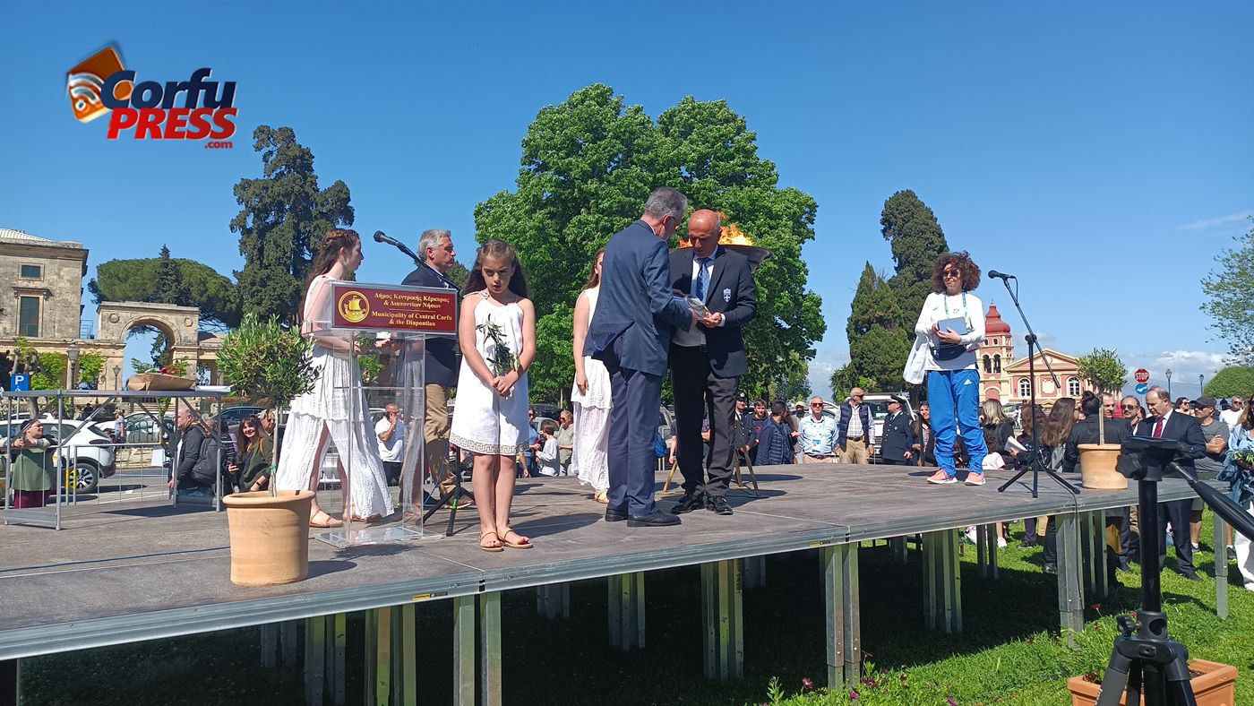 Στη συνέχεια, ακολούθησαν οι χαιρετισμοί του Δημάρχου Κεντρικής Κέρκυρας Στέφανου Πουλημένου, του εκπροσώπου της Πρεσβείας της Γαλλίας και του επικεφαλής της Εθνικής Επιτροπής Λαμπαδηδρομίας Σάκη Βασιλειάδη.