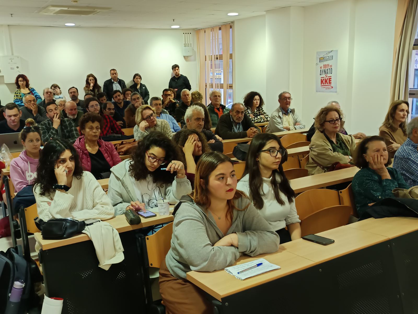 Στην συνέχεια ακολούθησε πλούσια συζήτηση, η οποία δεν στάθηκε μόνο στην Τριτοβάθμια Εκπαίδευση, αλλά συνολικότερα στην παιδεία, την υγεία, σε ό,τι απασχολεί την καθημερινότητα του λαού και της νεολαίας.