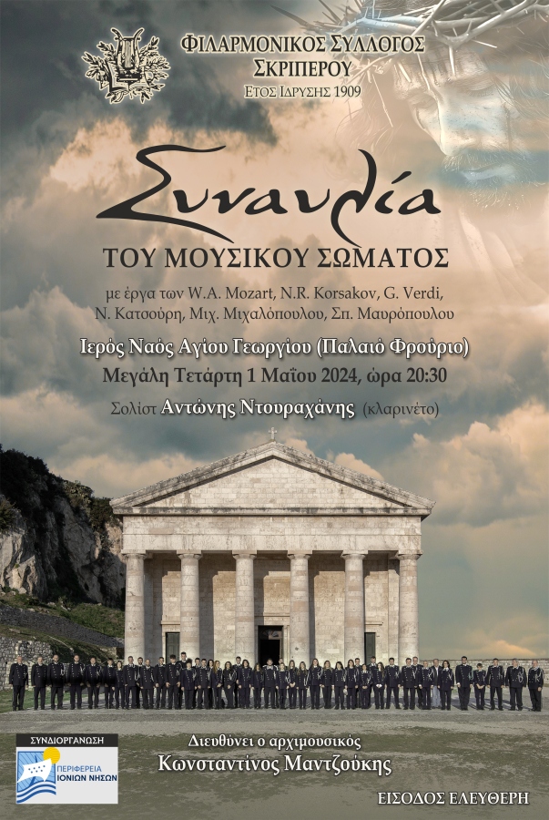 Το Μουσικό Σώμα του Φιλαρμονικού Συλλόγου Σκριπερού θα δώσει συναυλία τη Μ. Τετάρτη 1η Μαΐου στον Ιερό Ναό του Αγίου Γεωργίου (Παλαιό Φρούριο).