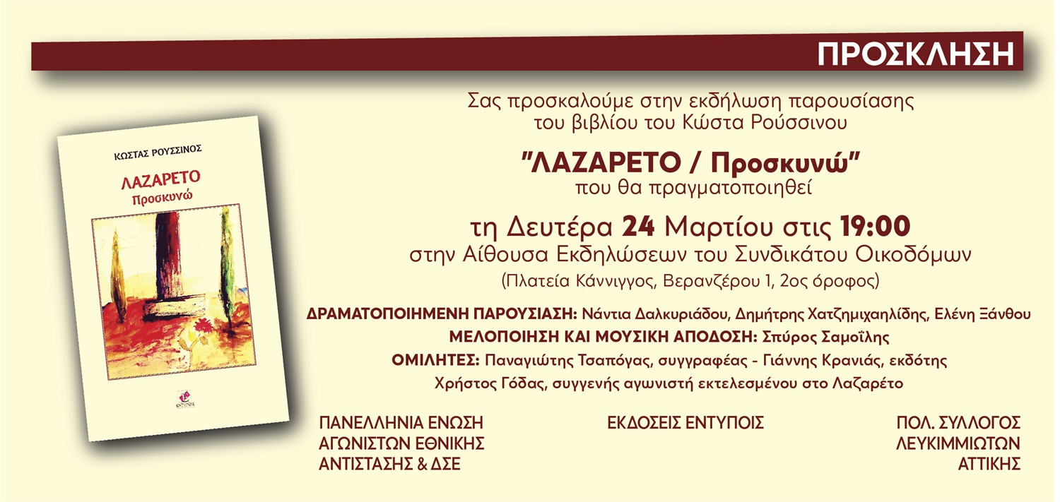 4. Τον Γιάννη Κρανιά και τις εκδόσεις “ΕΝΤΥΠΟΙΣ” που ταξιδεύουν εκδοτικά σε όλη την Ελλάδα το έργο.