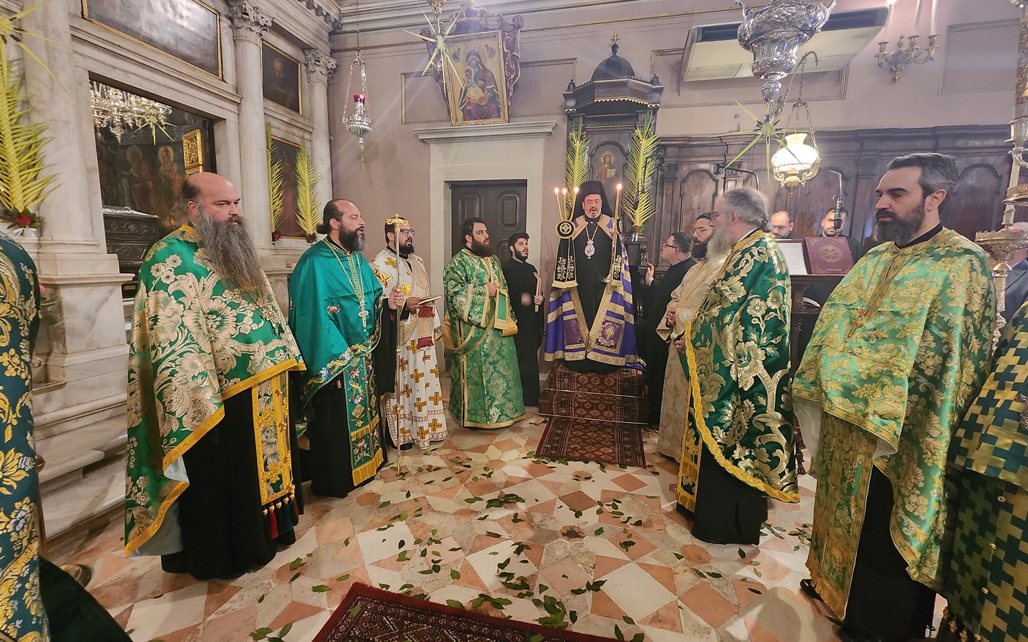 Απευθυνόμενος στους πιστούς ο Επίσκοπος Κοτυαίου, βοηθός του Μητροπολίτη Ιταλίας κ. Πολυκάρπου, τόνισε ότι την Κυριακή των Βαΐων χρειάζεται να ξαναδούμε ποιος είναι ο Χριστός της Εκκλησίας. Ο λαός πίστεψε ότι ο Χριστός ήταν ο βασιλεύς του Ισραήλ. Τον υποδέχεται θριαμβευτικά, αλλά τέσσερις ημέρες αργότερα θα Τον οδηγήσουν στον Σταυρό. Οι Ιουδαίοι είχαν δική τους αντίληψη για τον Μεσσία. Θεωρούσαν ότι θα ήταν απελευθερωτής του λαού από τους Ρωμαίους, ενώ Εκείνος ήρθε για να ελευθερώσει τον κόσμο από την αμαρτία. Τι εικόνα έχουμε εμείς για τον Χριστό; Αυτή την ερώτηση τη βάζουμε στον εαυτό μας, αλλά είναι λανθασμένη ερώτηση. Η Εκκλησία δεν είναι ένας σύλλογος που αποφασίζει δημοκρατικά για ένα θέμα. Ο ίδιος ο Χριστός μας δίνει την απάντηση για το Ποιος είναι και αυτό διασώζει η Εκκλησία μέσα από το Σύμβολο της Πίστεως. Η Εκκλησία καλείται να διαφυλάξει και να ορθοτομεί την πίστη την οποία παρέλαβε από τον Χριστό διά των Αποστόλων. Αλλιώς έχουμε πρόβλημα στη σωτηρία των ανθρώπων. Η Εκκλησία δεν είναι φιλανθρωπικός οργανισμός ούτε χώρος καλών ανθρώπων, αλλά εργαστήριο λύτρωσης και σωτηρίας.