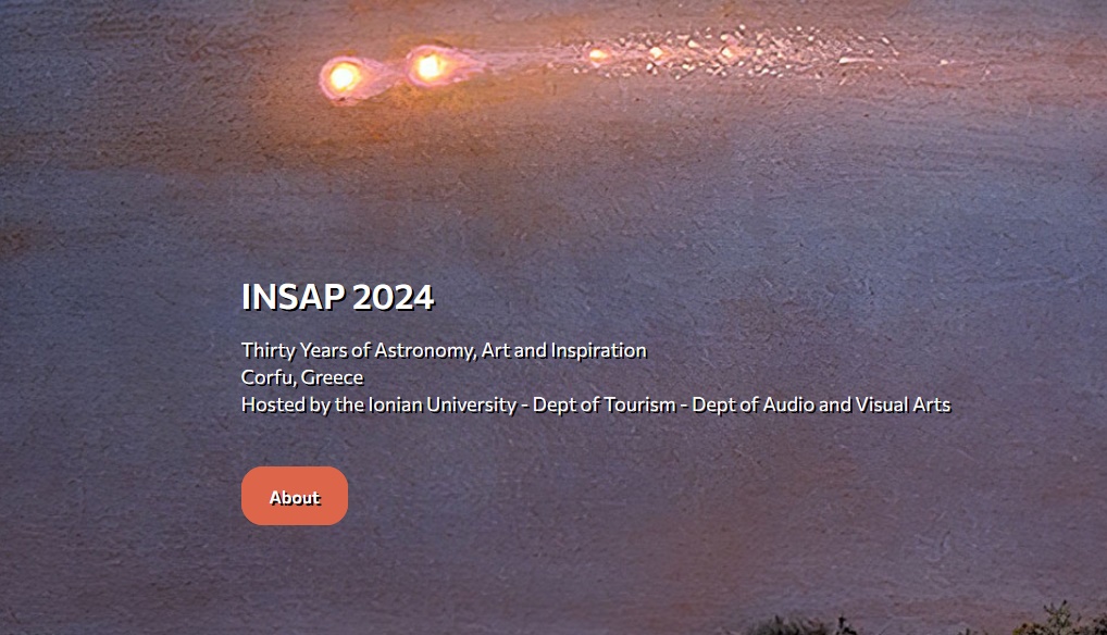 Το Ιόνιο Πανεπιστήμιο σε συνεργασία με την Αστρονομική Εταιρεία Κέρκυρας έχουν την τιμή να φιλοξενήσουν το 12ο Διεθνές Συνέδριο INSAP (INSpiration of Astronomical Phenomena), το οποίο θα πραγματοποιηθεί 20 με 24 Μαΐου 2024, στην Ιόνιο Ακαδημία στην Κέρκυρα. Το INSAP αποτελεί ένα σημείο συνάντησης για επιστήμονες, καλλιτέχνες και μελετητές από διάφορους κλάδους (συμπεριλαμβανομένης της Αστρονομίας, Αρχαιολογίας και της Ανθρωπολογίας, της Τέχνης και της Ιστορίας της Τέχνης, της Ιστορίας, των Φυσικών και Κοινωνικών Επιστημών, της Μυθολογίας, της Φιλοσοφίας και της Θρησκείας) για να παρουσιάσουν και να συζητήσουν τις μελέτες τους σχετικά με τις επιρροές που είχαν και έχουν τα αστρονομικά φαινόμενα στην ανθρωπότητα.