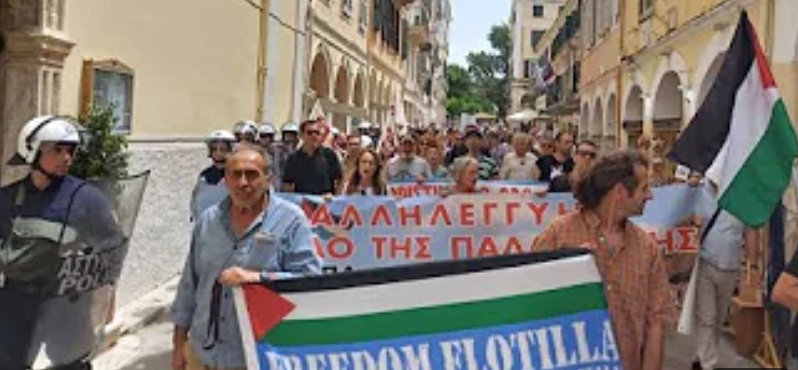 Συγκέντρωση αλληλεγγύης στο λαό της Παλαιστίνης και ενάντια στην ελληνική εμπλοκή πραγματοποιήθηκε στην Κέρκυρα, ύστερα από κάλεσμα του Εργατικού Κέντρου και του Νομαρχιακού Τμήματος Κέρκυρας της ΑΔΕΔΥ.