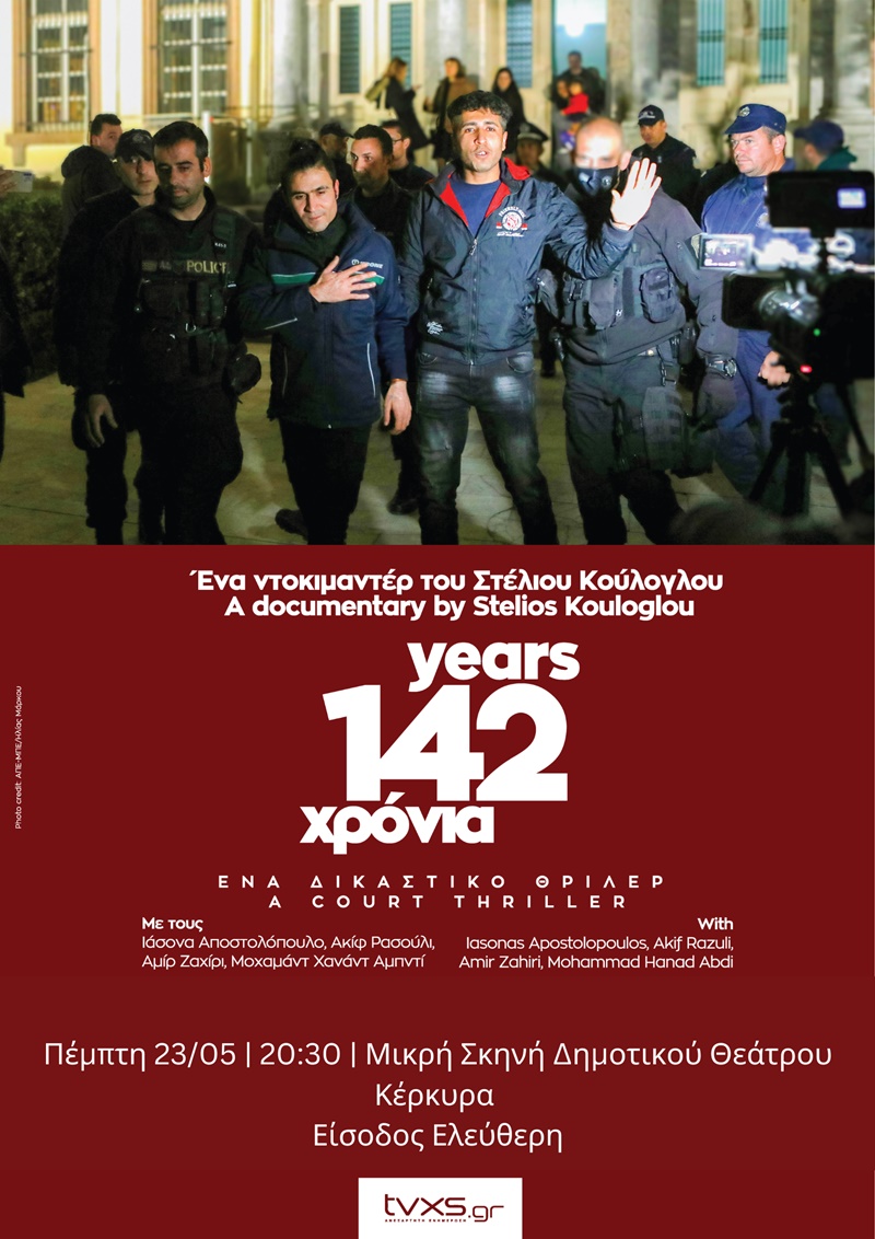 Τα «142 Χρόνια», το νέο ντοκιμαντέρ – δικαστικό θρίλερ του Στέλιου Κούλογλου, που προβάλλεται ανά την Ελλάδα συγκεντρώνοντας το μεγάλο ενδιαφέρον των τοπικών κοινωνιών, φτάνει την Πέμπτη 23 Μαΐου, στην Κέρκυρα.