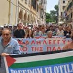Ο επικεφαλής του τμήματος των χορευτών Κέρκυρας κρατούσε ψηλά το σύμβολο του παλαιστινιακού λαού