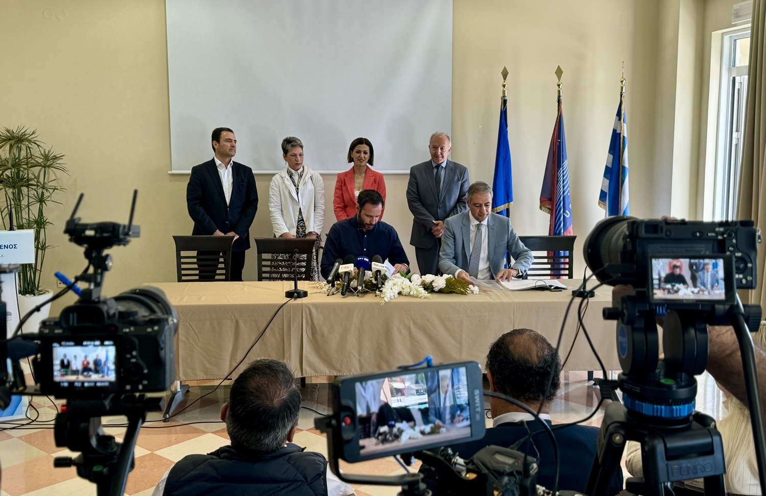Εν συνεχεία, πραγματοποιήθηκε στον Ο.Λ.ΚΕ. η τελετή υπογραφής των Συμβάσεων, οι οποίες ξεπερνούν συνολικά τα 5.5 εκατομμύρια €.