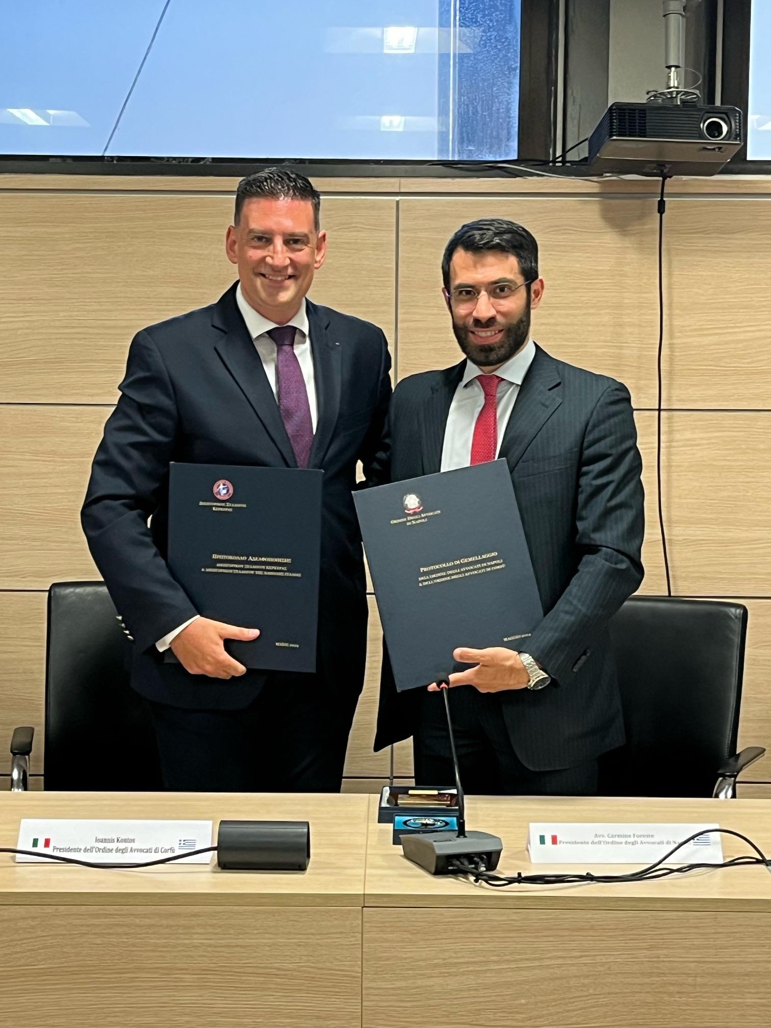 Να δημιουργήσουμε, δηλαδή, μια σχέση που δεν υπήρχε πριν, μεταξύ των Δικηγόρων της Κέρκυρας και της Νάπολης, που να μπορεί να έχει αναφορές στα κοινά μας στοιχεία και σε όλους τους τομείς του δικαίου, ιδιαίτερα στο ποινικό δίκαιο, που σε αυτή την πόλη, έχει μεγάλη ιστορία και έχει καλλιεργηθεί πολύ, έχοντας αυτονόητους δεσμούς με μια από τις σημαντικότερες Νομικές Σχολές στην Ευρώπη, αυτή του Πανεπιστημίου της Νάπολης «Federico II».