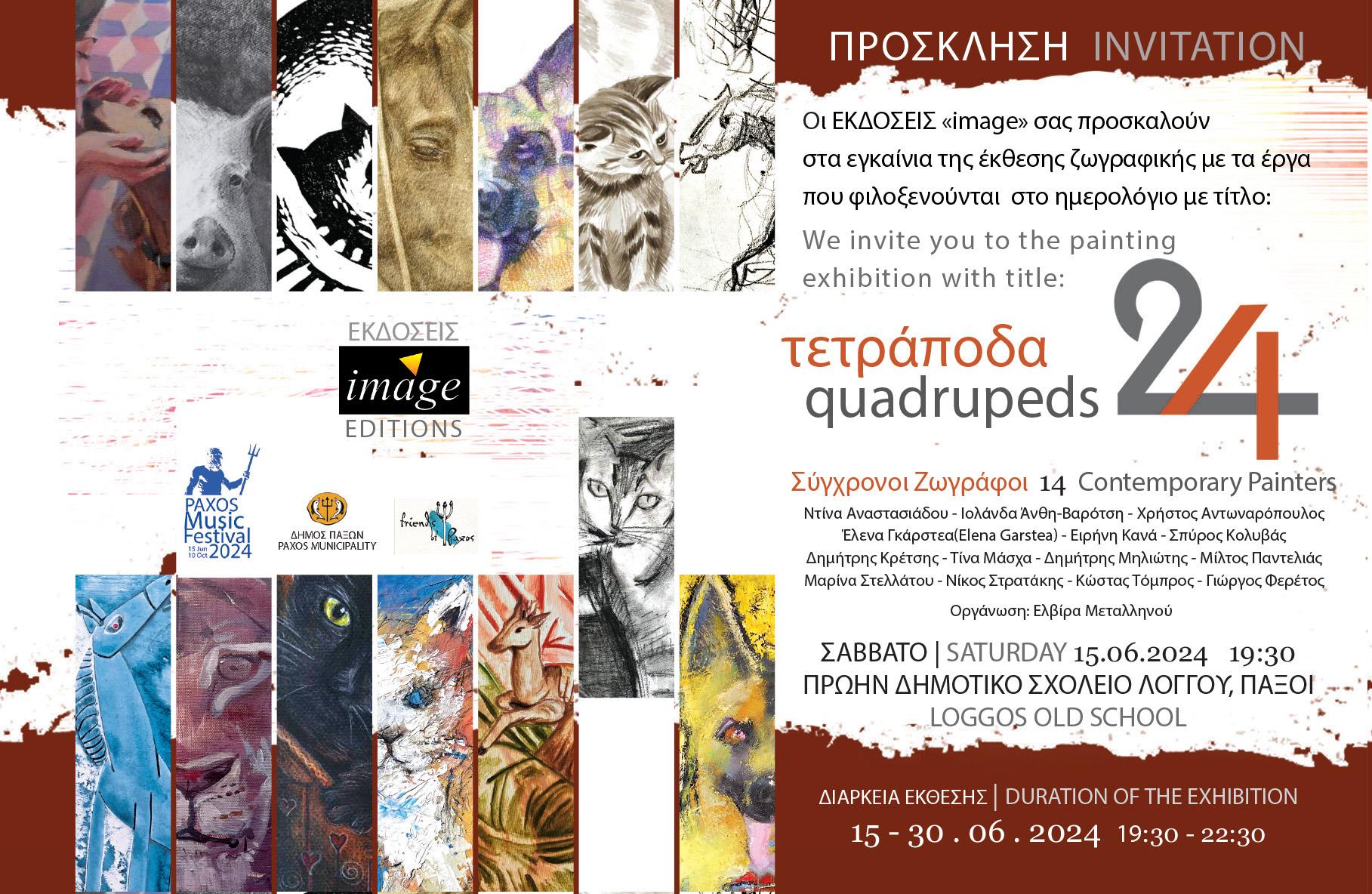 Εγκαινιάζεται το Σάββατο 15 Ιουνίου 2024, η ομαδική έκθεση ζωγραφικής με τίτλο: «τετράποδα», στην αίθουσα του «Πρώην Δημοτικού Σχολείου Λογγού».