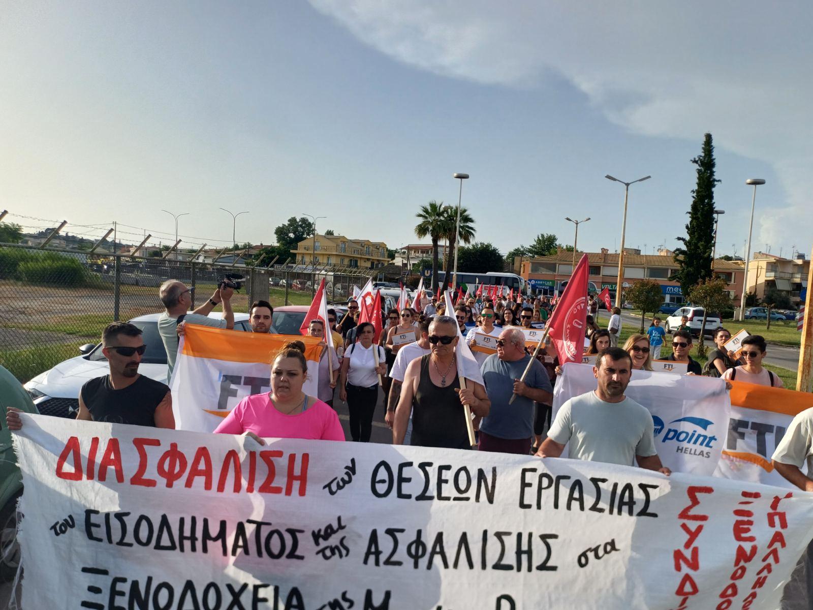 Με μεγάλη συμμετοχή ξεκίνησε χτες στις 16:00 και συνεχίζεται μέχρι σήμερα στις 16:00, η 24ωρη απεργία που κήρυξε το Εργατικό Κέντρο Κέρκυρας στα ξενοδοχεία Sandy Beach, Sandy Villas, Kairaba Mythos, καθώς και στο Γραφείο Γενικού Τουρισμού που εκμεταλλεύεται στην Κέρκυρα η εταιρεία Meeting Point Hellas, θυγατρική του υπό πτώχευση τουριστικού