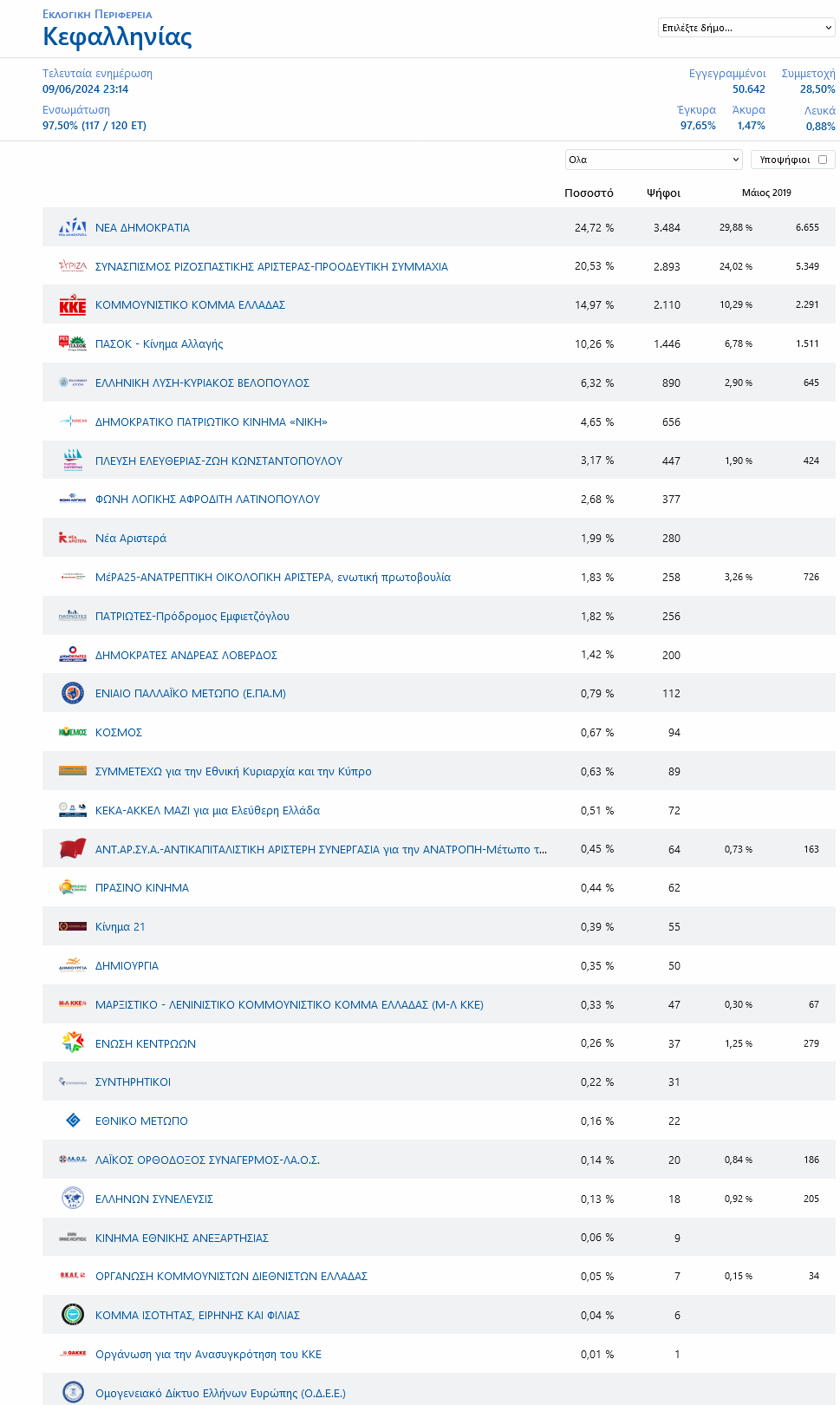 Κεφαλονιά: Νίκη ΝΔ με 24,72%, στο 20,53% ο δεύτερος ΣΥΡΙΖΑ