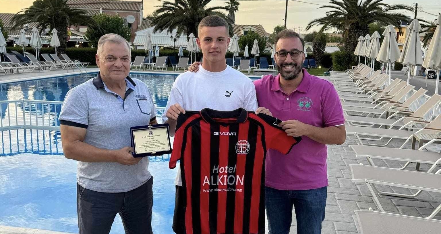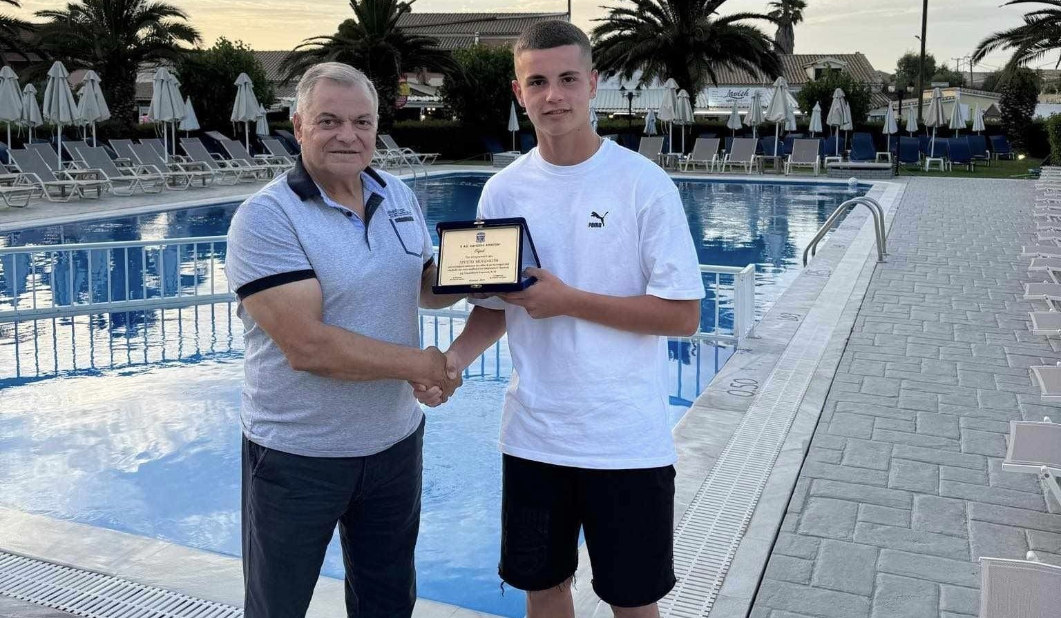 Ο νεαρός άσος της Ομάδας Νέων του Ολυμπιακού που έχει καταγωγή από τους Αυλιώτες τιμήθηκε απ΄τον πρόεδρο του Οδυσσέα Γιάννη Μουζακίτη κατά τη διάρκεια των διακοπών του στην Κέρκυρα.