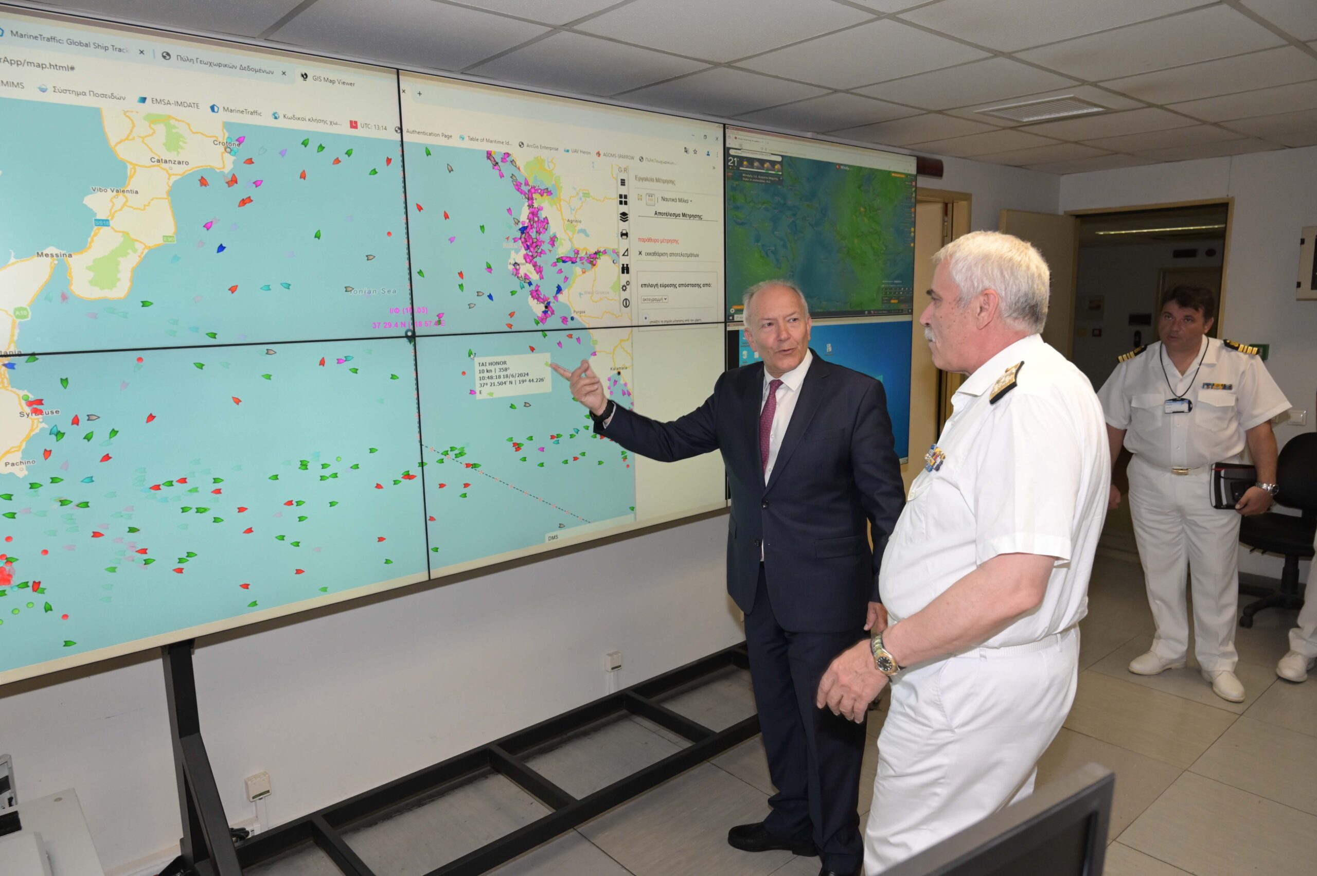 Ενημερωτική επίσκεψη στο Κέντρο Επιχειρήσεων του Λιμενικού Σώματος και της Ελληνικής Ακτοφυλακής (ΚΕΠΙΧ/Λ.Σ-ΕΛ.ΑΚΤ.) και στο Ενιαίο Κέντρο Συντονισμού Έρευνας & Διάσωσης (ΕΚΣΕΔ) πραγματοποίησε την Τρίτη ο Υφυπουργός Ναυτιλίας και Νησιωτικής Πολιτικής, Στέφανος Γκίκας, συνοδευόμενος από τον Αρχηγό του Λιμενικού Σώματος Αντιναύαρχο Γιώργο Αλεξανδράκη, όπου ο κ. Γκίκας ενημερώθηκε για το έργο, τις επιχειρησιακές λειτουργίες και δραστηριότητες των Κέντρων Επιχειρήσεων.
