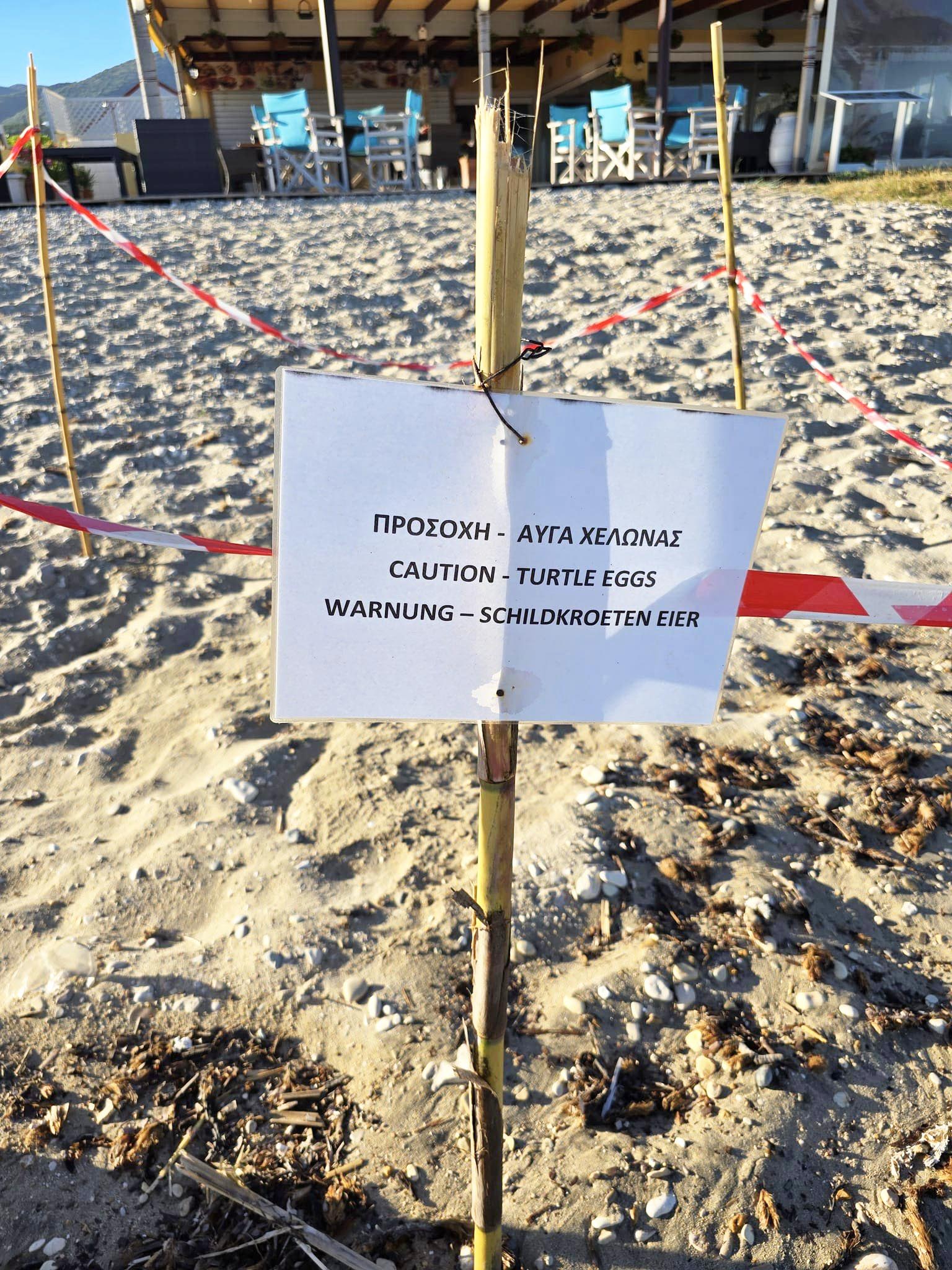 Μία αξιέπαινη πρωτοβουλία ιδιωτών να “μαρκάρουν” το σημείο που θαλάσσιες χελώνες γέννησαν στην παραλία της Αχαράβης, ώστε να μην πατήσει κανείς τα αυγά που επωάζονται!
