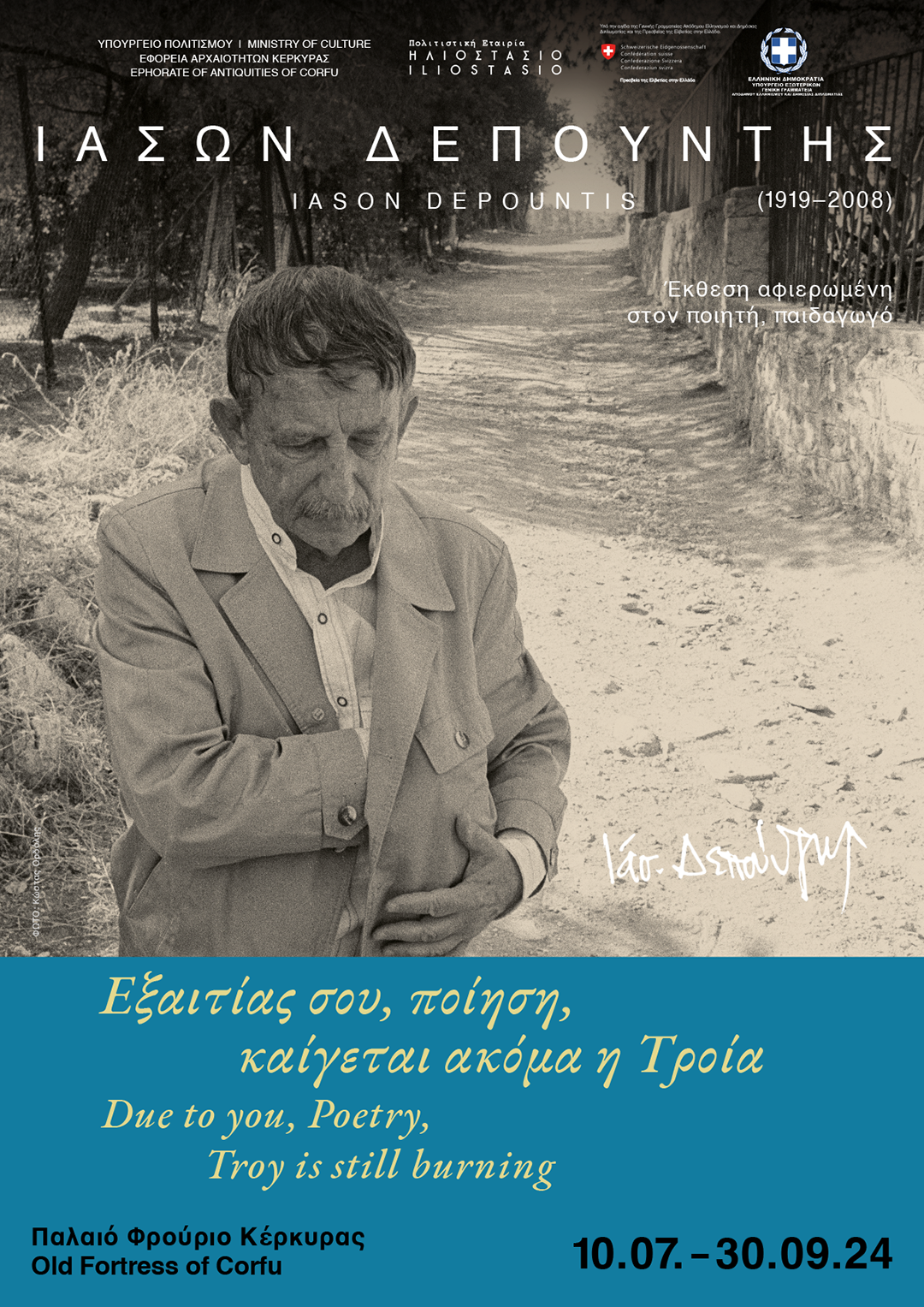 Η Πολιτιστική Εταιρία ΗΛΙΟΣΤΑΣΙΟ και η Εφορεία Αρχαιοτήτων Κέρκυρας συνδιοργανώνουν την έκθεση με θέμα «Εξαιτίας σου, ποίηση, καίγεται ακόμα η Τροία – Ιάσων Δεπούντης (1919-2008)».