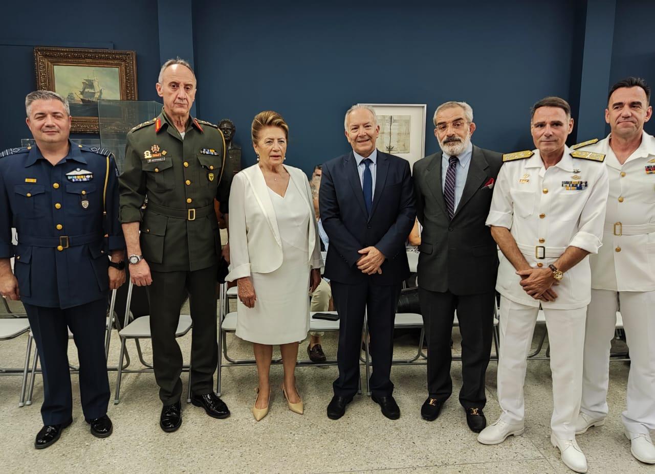 Ο κ. Υφυπουργός συνεχάρη την κα Αναγνωστοπούλου – Παλούμπη για την πολύτιμη προσφορά του Ναυτικού Μουσείου, που με τις συλλογές του και τις δράσεις του διαφυλάττει και προβάλλει την μακραίωνη ναυτική κληρονομιά και παράδοση των Ελλήνων, ενώ έκανε ειδική μνεία και στην οικογένεια Μπαμπλένη, καθώς όπως είπε, με την μακρόχρονη, επίμονη και θαυμαστή προσπάθειά τους να συλλέξουν νομίσματα και μετάλλια από όλες τις χώρες που διοργάνωσαν Ολυμπιακούς Αγώνες, προβάλλουν και διατηρούν το Ολυμπιακό Πνεύμα και τις αξίες που πρεσβεύει.