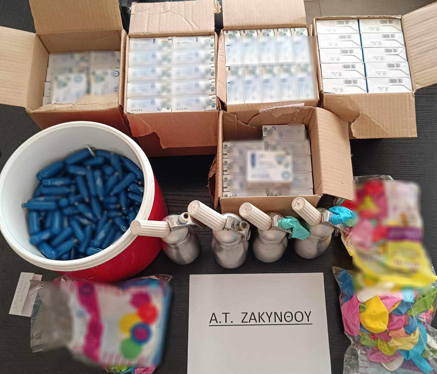 Αποτέλεσμα των ελέγχων που πραγματοποιήθηκαν τις πρώτες πρωινές ώρες σήμερα (20.07.2024), από αστυνομικούς Υπηρεσιών της Διεύθυνσης Αστυνομίας Ζακύνθου σε δύο καταστήματα υγειονομικού ενδιαφέροντος στην περιοχή του Λαγανά, ήταν κατασχεθεί μεγάλος αριθμός αμπουλών αερίου γέλιου, μπαλόνια και μηχανισμοί χρήσης.