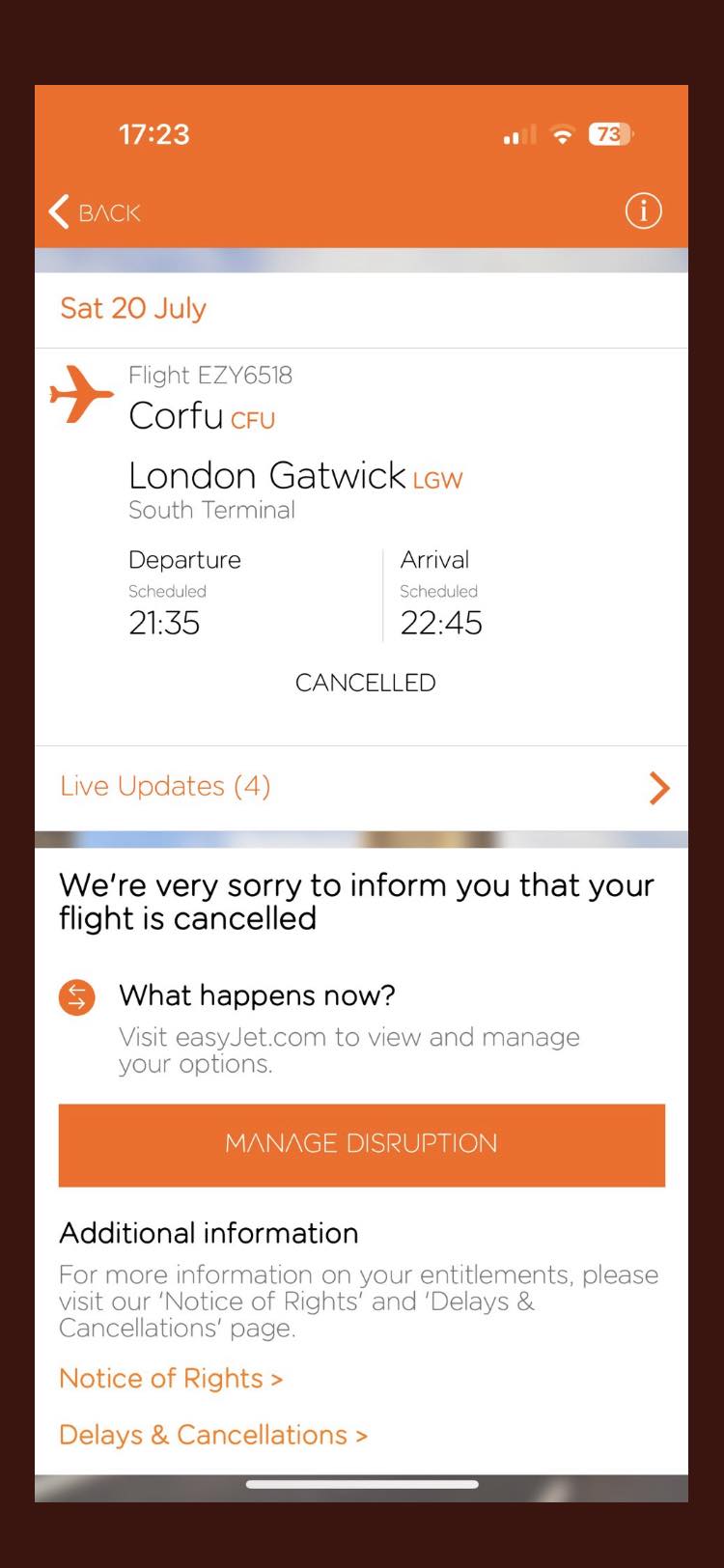 Την κατάσταση επέτεινε και η καταιγίδα με κεραυνούς που έπληξε την κεντρική Ευρώπη και είχε ως αποτέλεσμα την ακύρωση πτήσεων προς Αγγλία και Γερμανία (π.χ. την πτήση των 21.35 από Κέρκυρα προς Gatwick).
