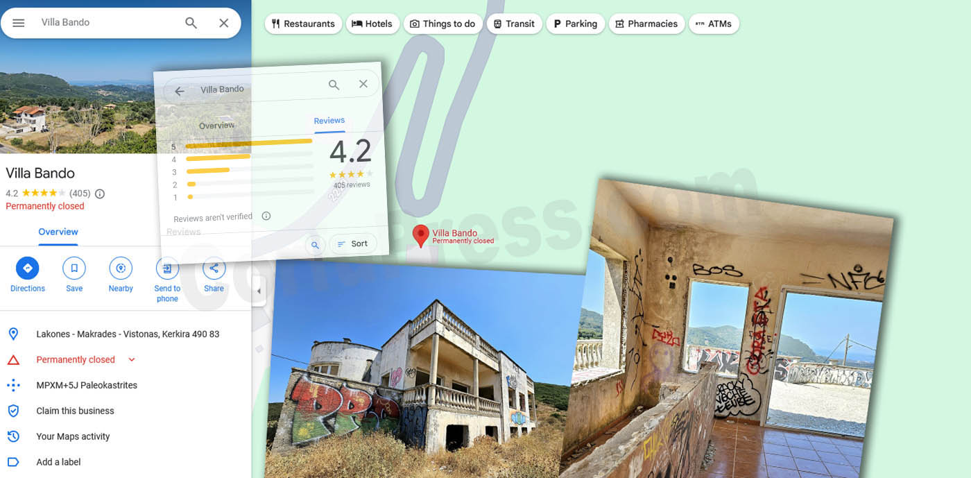 Ολοένα και περισσότερες αναρτήσεις στο Google Maps, στο Tripadvisor αλλά και τα κοινωνικά δίκτυα έχει από τουρίστες η εγκαταλελειμμένη βίλα Μπάντο μεταξύ Τρουμπέτα και Μακράδων, στα ορεινά της Κέρκυρας. Το (θα μπορούσε να είναι) όμορφο σπίτι, ερειπωμένο, με την απίστευτη θέα και την άγνωστη ιστορία, φαίνεται πως… ιντριγκάρει τους επισκέπτες του νησιού!
