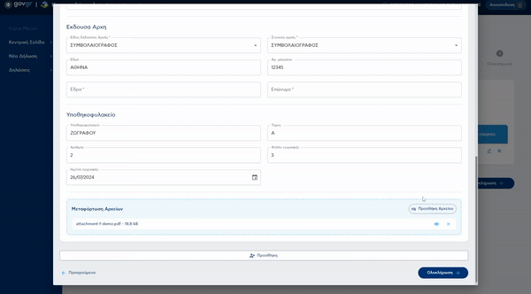 Τρίτον, εφόσον ο χρήστης έχει συμπληρώσει τα στοιχεία του και έχει εντοπίσει το οικόπεδο του στο χάρτη , θα χρειαστεί να συμπληρώσει τη φόρμα της αίτησής του και να αναρτήσει στην εφαρμογή τα συνοδευτικά έγγραφα που τεκμηριώνουν την ιδιοκτησία του.
