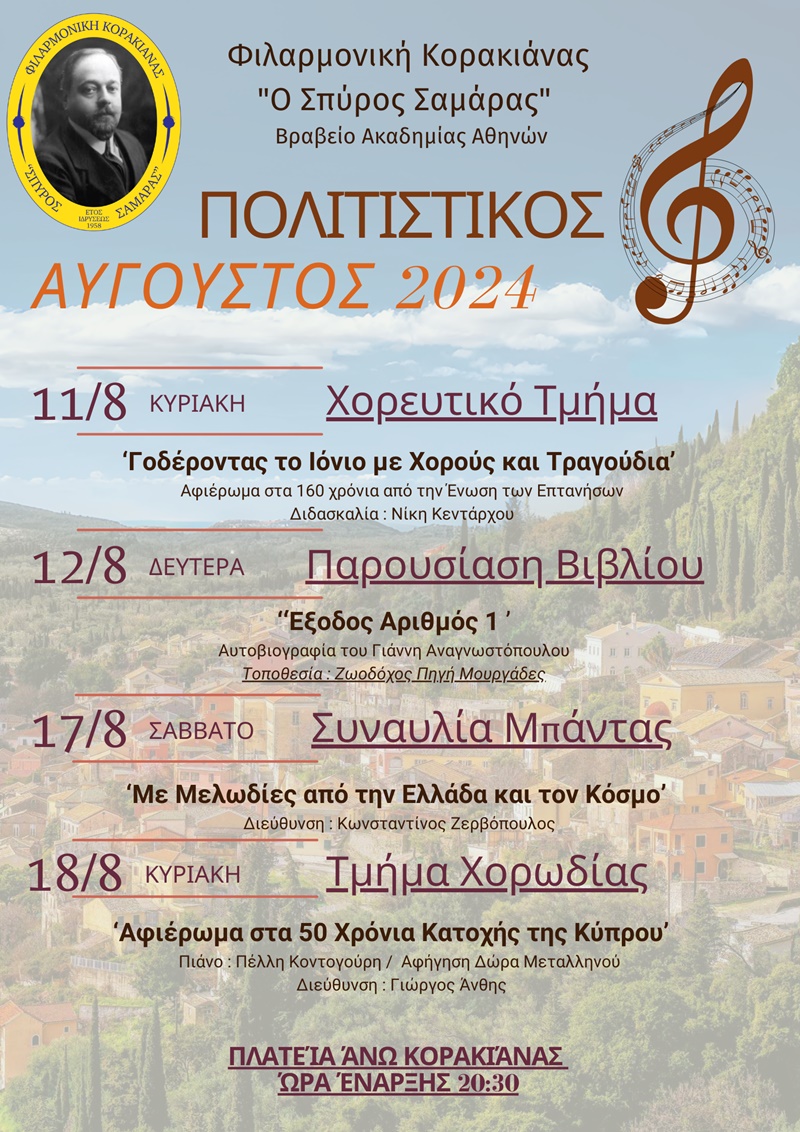 Θα ξεκινήσει στις 11 και θα ολοκληρωθεί στις 18 Αυγούστου. Ολες οι εκδηλώσεις θα γίνουν στην Πλατεία Άνω Κορακιάνας με ώρα έναρξης στις 8.30 το βράδυ.