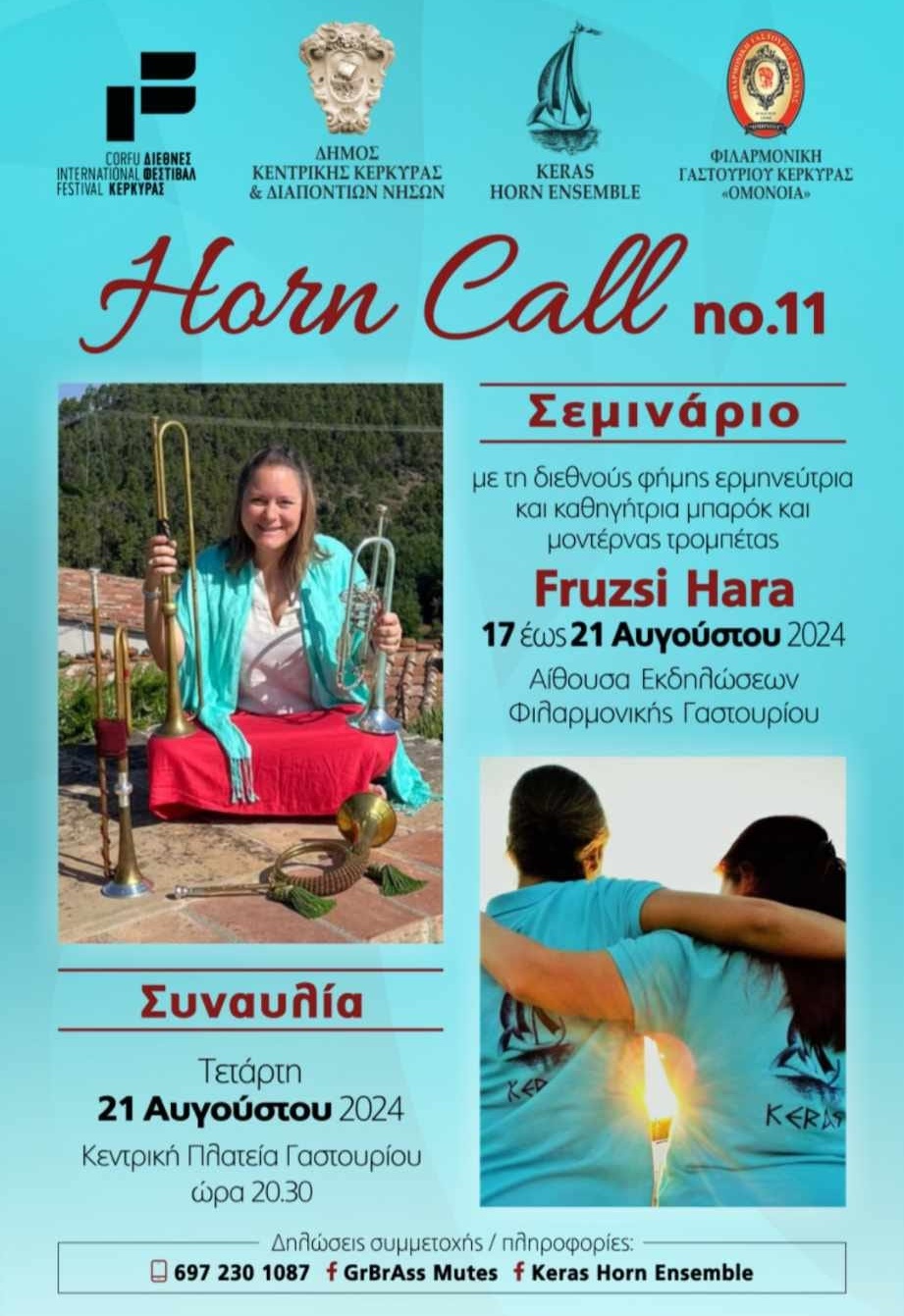 Το Σάββατο 17/8/2024 και ώρα 10:00 ξεκινά στην αίθουσα της Φιλαρμονική Γαστουρίου Κέρκυρας “Ομόνοια” το σεμινάριο τρομπέτας από την καθηγήτρια Fruzsi Hara που αφορά όλους όσους παίζουν ΠΝΕΥΣΤΆ όργανα.