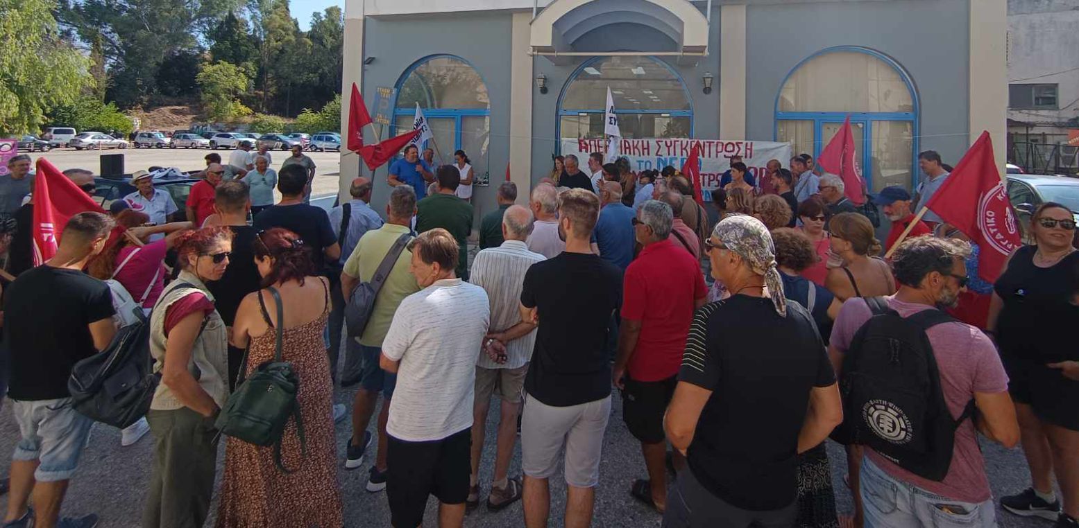 Έξω από τα κεντρικά γραφεία της ΔΕΥΑΚ πραγματοποιήθηκε συγκέντρωση διαμαρτυρίας ενάντια στην πολιτική της Κυβέρνησης και των τοπικών διοικήσεων για το νερό.