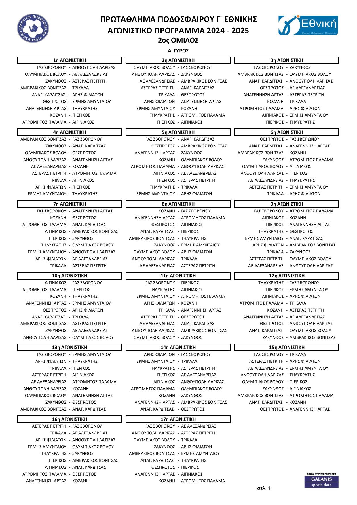 Πραγματοποιήθηκε την Παρασκευή η διαδικασία κλήρωσης για τον καταρτισμό του αγωνιστικού προγράμματος του πρωταθλήματος Γ’ Εθνικής, του μεγαλύτερου, σε συμμετοχή, εθνικού πρωταθλήματος, για την αγωνιστική περίοδο 2024-25.