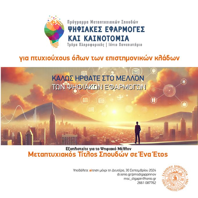 Ανακαλύψτε το Μέλλον των Ψηφιακών Εφαρμογών. Ανοίγουν οι Υποβολές για το Μεταπτυχιακό Πρόγραμμα Ψηφιακών Εφαρμογών και Καινοτομίας του Ιονίου Πανεπιστημίου