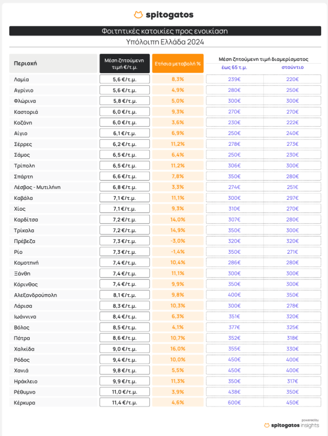 - Συγκεντρώσαμε δειγματοληπτικά μερικές από τις τιμές που την Παρασκευή βρήκαμε στην ειδικό ιστοσελίδα spitogatos.gr. Οι τιμές που είδαμε ήταν πολλές φορές εξωφρενικές, ενώ για πάνω από τους μισούς ιδιοκτήτες διαπιστώσαμε ότι έχουν θέσει προς ενοικίαση το σπίτι τους μόνο για 9 μήνες, συνήθως Οκτώβριο με Ιούνιο... Ιδού ορισμένες τιμές, που αντικατοπτρίζουν τις περισσότερες αγγελίες:
