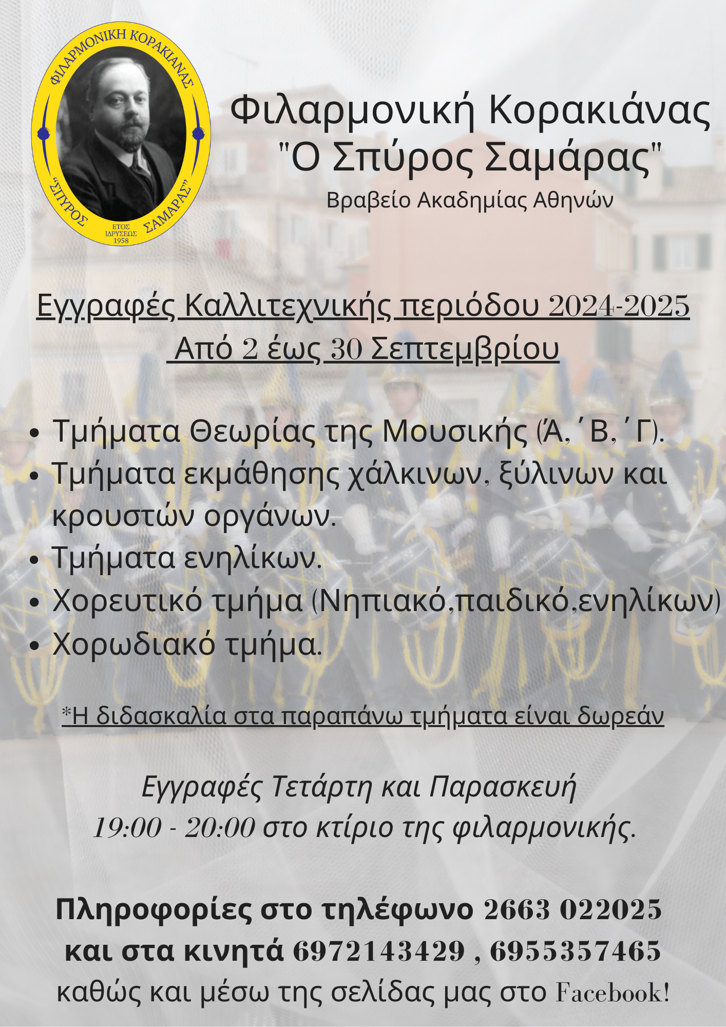 ΠΟΛΙΤΙΣΜΟΣ - ΕΚΔΗΛΩΣΕΙΣΕΙΔΗΣΕΙΣCULTURE Ξεκινούν οι εγγραφές στη Φιλαρμονική Κορακιάνας Οι εγγραφές για τη νέα περίοδο αρχίζουν τη Δευτέρα και θα ολοκληρωθούν στις 30 Σεπτεμβρίου. Last updated: 01/09/2024 16:28 CorfuPress.com Published: 01/09/2024 Share SHARE Οι εγγραφές για τη νέα περίοδο αρχίζουν τη Δευτέρα και θα ολοκληρωθούν στις 30 Σεπτεμβρίου. Συλλυπητήρια της Φιλαρμονικής Κορακιάνας για το χαμό του Σπύρου Σαββανή Ξεκινούν οι εγγραφές στη Φιλαρμονική Κορακιάνας Πολιτιστικός Αύγουστος από τη Φιλαρμονική Κορακιάνας Πολιτιστικός Αύγουστος από τη Φιλαρμονική Κορακιάνας Πολιτιστικός Αύγουστος από τη Φιλαρμονική Κορακιάνας Share This Article Facebook Whatsapp Whatsapp Email Copy Link Print Previous Article Η Νομαρχιακή Κέρκυρας για τα 50 χρόνια ΠΑΣΟΚ Next Article Εντοπίστηκαν οι Γάλλοι που… χάθηκαν στην Παλιά Περίθεια Δεν υπάρχουν Σχόλια Δεν υπάρχουν Σχόλια Αφήστε μια απάντηση Ακύρωση απάντησηςΗ ηλ. διεύθυνση σας δεν δημοσιεύεται. Τα υποχρεωτικά πεδία σημειώνονται με *Σχόλιο * Όνομα * Email * Ιστότοπος Αποθήκευσε το όνομά μου, email, και τον ιστότοπο μου σε αυτόν τον πλοηγό για την επόμενη φορά που θα σχολιάσω. ΑναζήτησηΑναζήτησηRecent PostsΌλα τα μάτια στον Θοδωρή, τον καπετάνιο μας! Τη Δευτέρα 22 Σεπτεμβρίου γιορτάζει… Σαν Σήμερα 22/9: Τα σημαντικότερα γεγονότα… Η πρόγνωση του καιρού Έφηβοι Ιονίου: Με περίπατο, συνεχίζουν στο Rising Stars! Recent CommentsΧωρίς σχόλια για εμφάνιση.