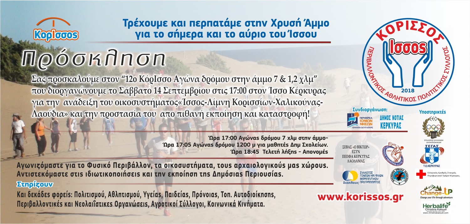 Ο αγώνας διοργανώνεται για την ανάδειξη του οικοσυστήματος “Ίσσος-Λίμνη Κορισσίων-Χαλικούνας-Λαούδια” και την προστασία του από πιθανή εκποίηση και καταστροφή.
