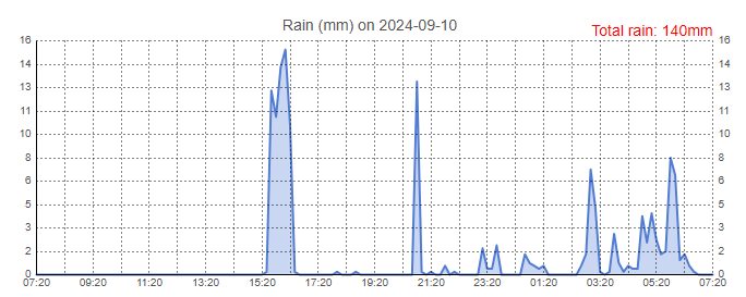 Στην πόλη της Κέρκυρας μέσα σε ένα 24ωρο, έπεσαν 165 χιλιοστά βροχής που αντιστοιχούν σε 165 τόνους νερού ανά στρέμμα, ενώ μόνο το βράδυ, σε διάστημα τριών ωρών, έπεσαν σε περιοχές του βορείου συγκροτήματος 70 χιλιοστά βροχη΄ς (70 τόνοι ανά στρέμμα).