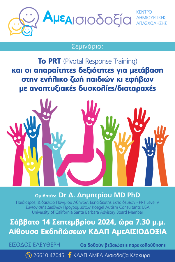 ΘΕΜΑ: PRT(Pivotal Response Training) Αναφορικά με τη διδασκαλία των απαραίτητων δεξιοτήτων, με το βλέμμα στραμμένο στο μέλλον των παιδιών μας με αναπτυξιακές διαταραχές.