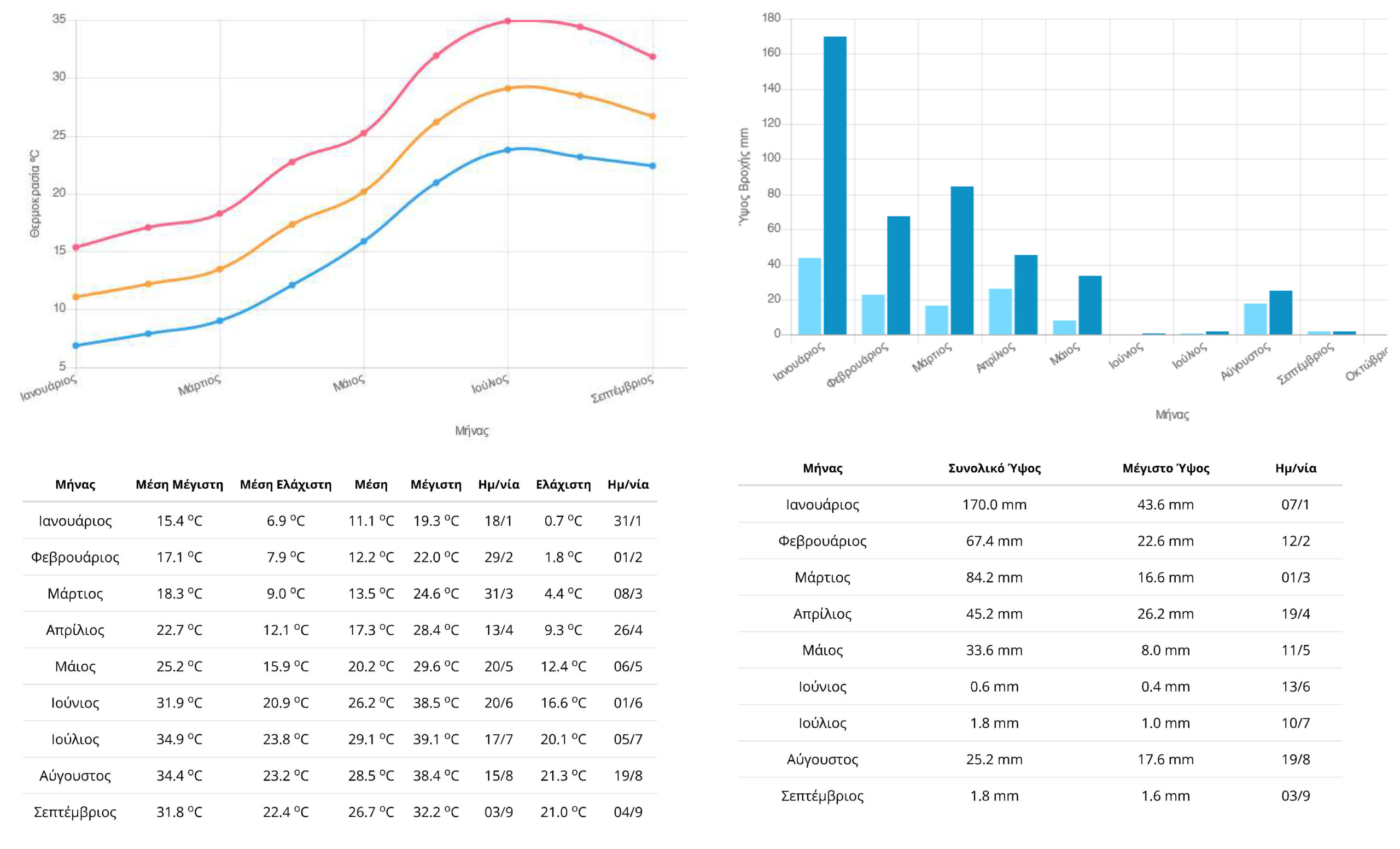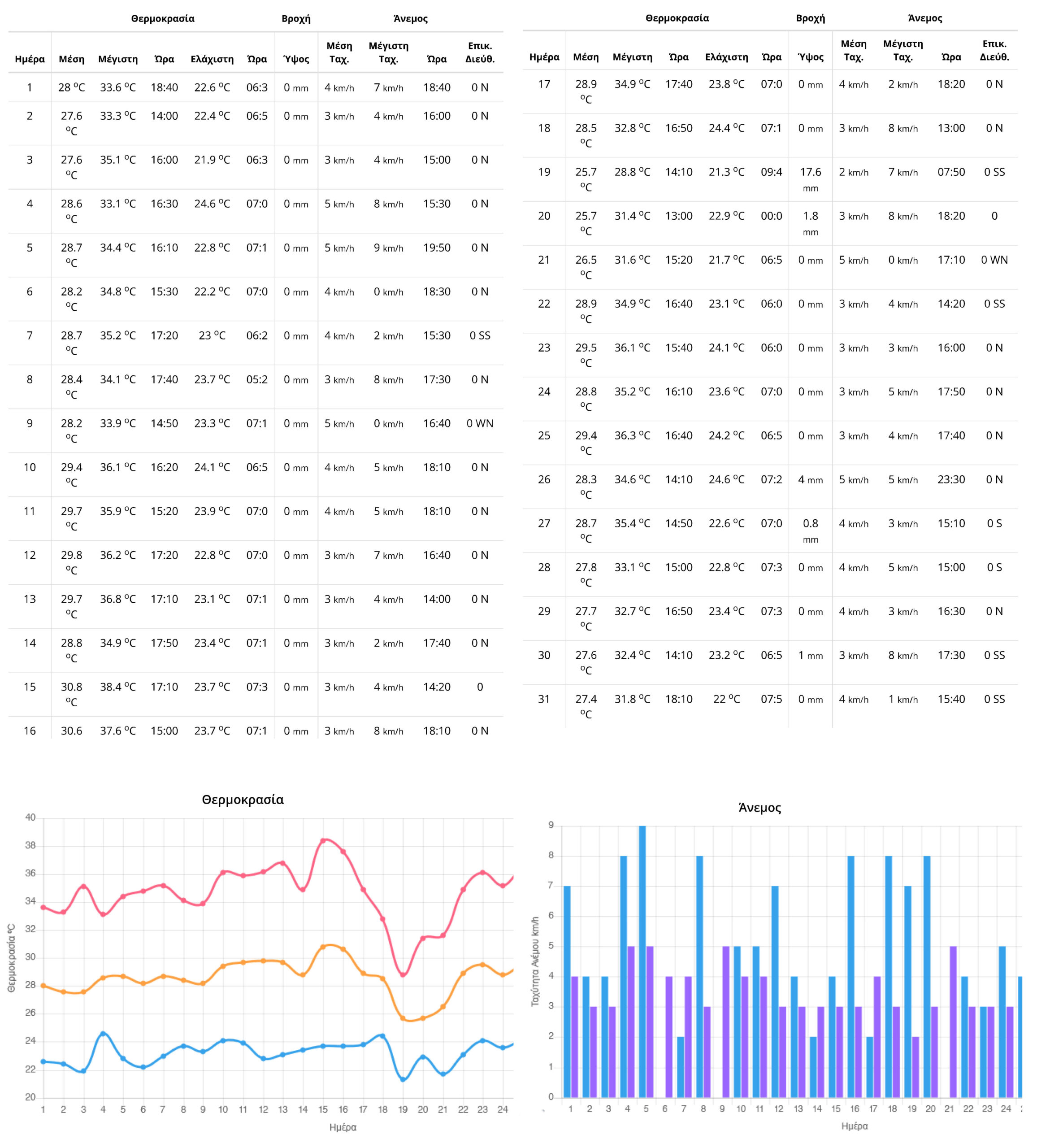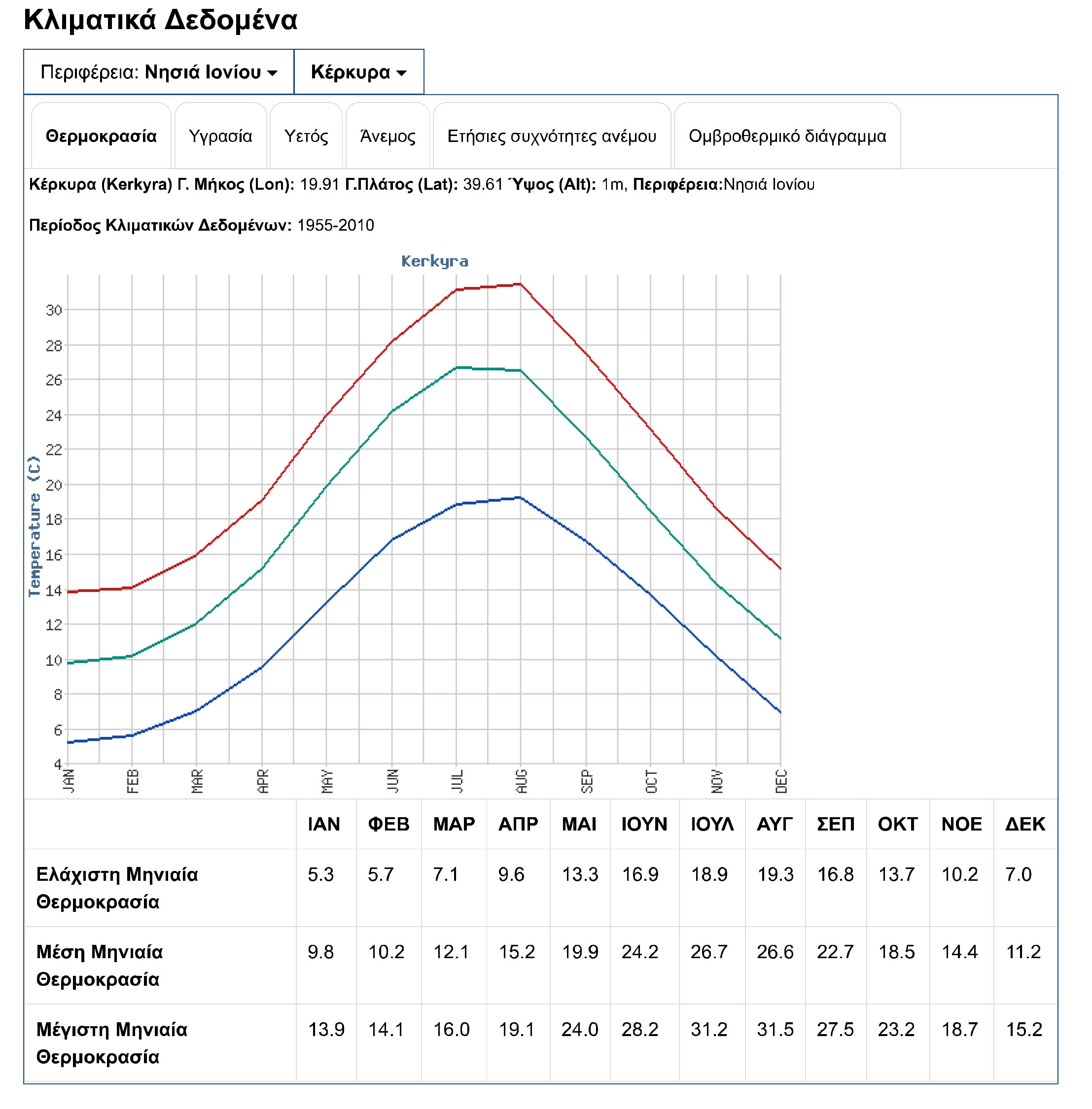 Είναι χαρακτηριστικό ότι στην Κέρκυρα το φετινό Αύγουστο, η μέγιστη θερμοκρασία δεν έπεσε κάτω από τους 31 βαθμούς (με μία εξαίρεση στις 19 του μηνός που ανέβηκε μέχρι τους 28,8) ενώ πάνω από τα 2/3 των ημερών έφτανε πάνω από τους 34 βαθμούς!