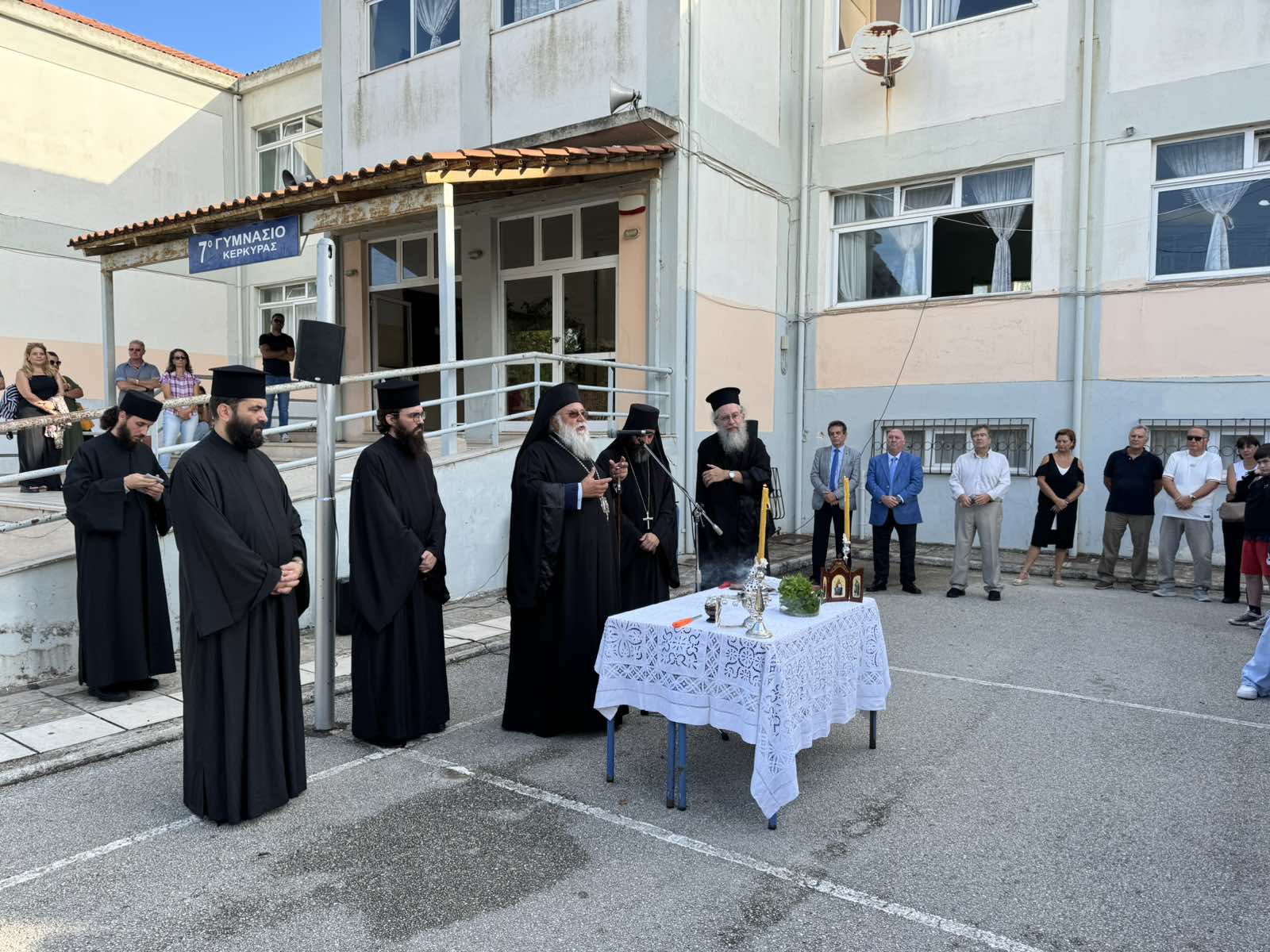 Το πρωί της Τετάρτης 11 Σεπτεμβρίου 2024 ο Σεβασμιώτατος Μητροπολίτης Κερκύρας, Παξών και Διαποντίων Νήσων κ. Νεκτάριος τέλεσε τον αγιασμό για την έναρξη του νέου σχολικού έτους 2024-2025 κατά σειράν στο 14ο Δημοτικό Σχολείο Κέρκυρας, στο 7ο Γυμνάσιο Κέρκυρας, στο 4ο Λύκειο Κέρκυρας και στο Μουσικό Σχολείο. Οι εκπαιδευτικοί και τα παιδιά με ιδιαίτερη χαρά υποδέχτηκαν στον Σεβασμιώτατο και συμμετείχαν με πολλή προσοχή στην ιερά ακολουθία, ενώ στο Μουσικό Σχολείο παρουσιάστηκε σύντομο μουσικό πρόγραμμα προς τιμήν του Μητροπολίτη.